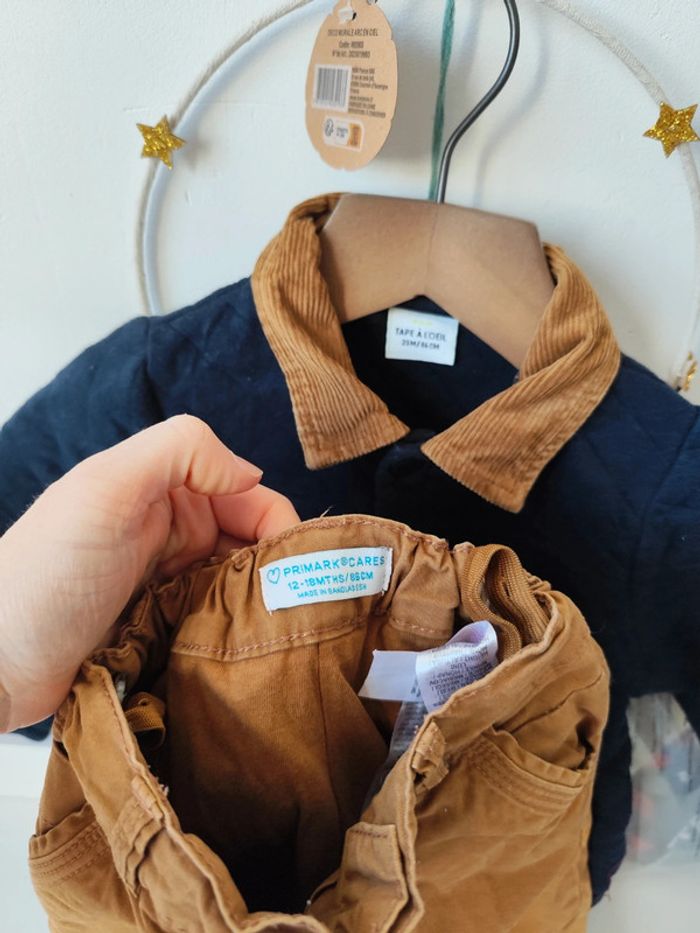 Veste tape à l'oeil 3mois mais taille comme un 18 mois très bon état Pantalon camel Primark bon état 12/18mois 86cm donc 18 mois ok #elyodress18mois #elyodress12et18mois N'hésitez pas à me suivre, je rajoute régulièrement des nouveautés en Zara h M tao mango Primark sergent major Kiabi Gémo ...
