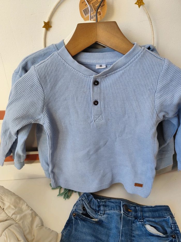 - je donne le t-shirt gaufré manches longues car tâches discrètes dessus. 86cm