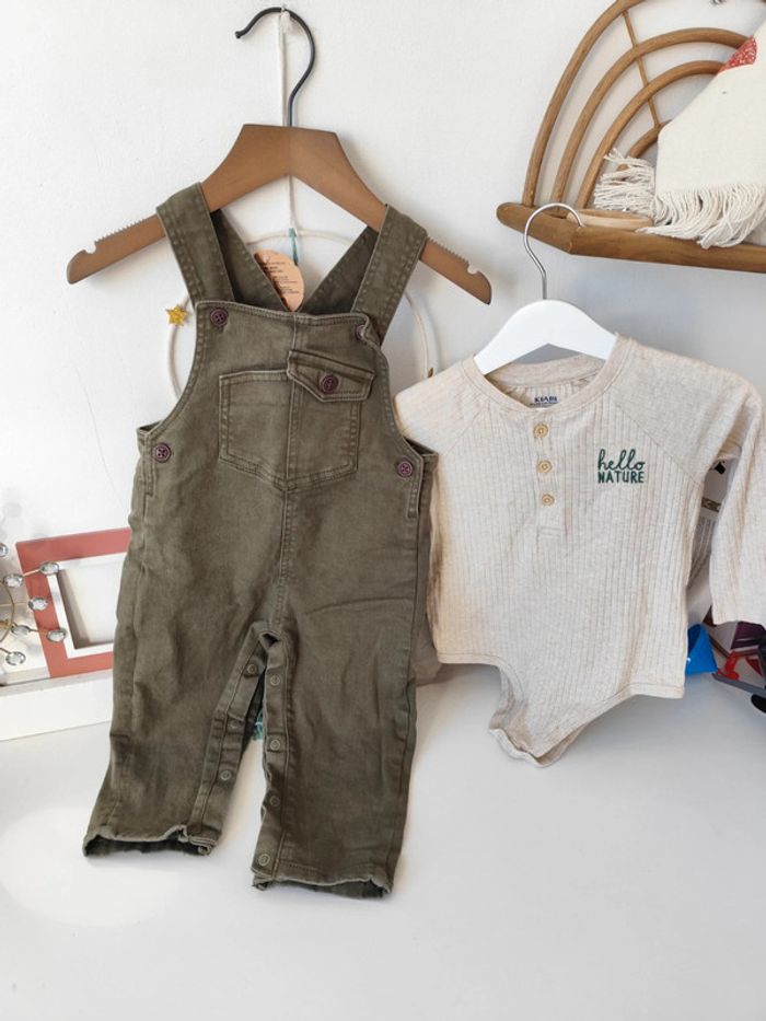 Ensemble composé de : - une salopette kaki Primark 12/18mois 86cm tbe - un body Kiabi côtelé nature 18 mois tbe #elyodress18mois #elyodress12et18mois N'hésitez pas à me suivre, je rajoute régulièrement des nouveautés en Zara h M Mango tao sergent major Primark Kiabi .. .