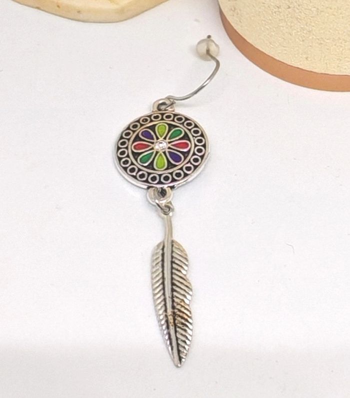 Boucles d'oreilles pendantes ronde et plume 🪶 Tendance 🌺 Neuf jamais porté 💖 #bijoux #bouclesdoreilles #tendance #boho #boheme #bohostyle #bohochic #vintage #retro #retrostyle #retrolook #glamour #glam #plume #argenté #ronde