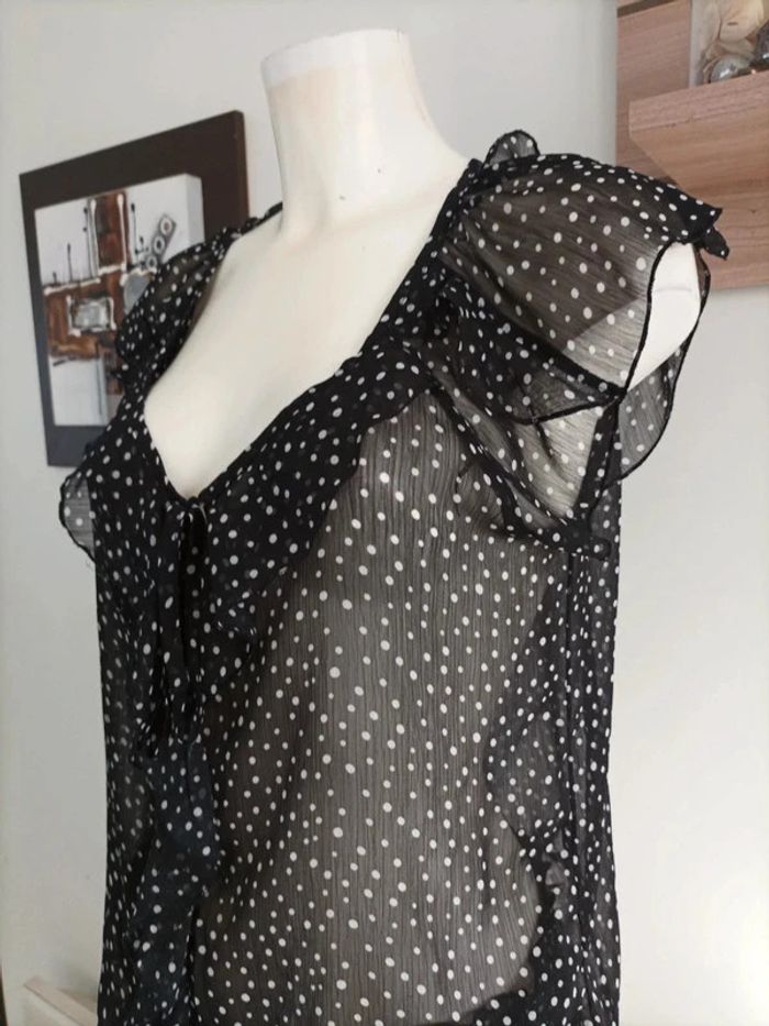 Blouse noire à pois blancs Taille 46 - photo numéro 3