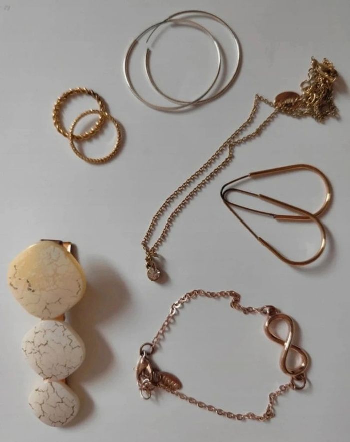 lot de bijoux barrette, bracelet, collier, bagues, boucles d'oreille - photo numéro 1