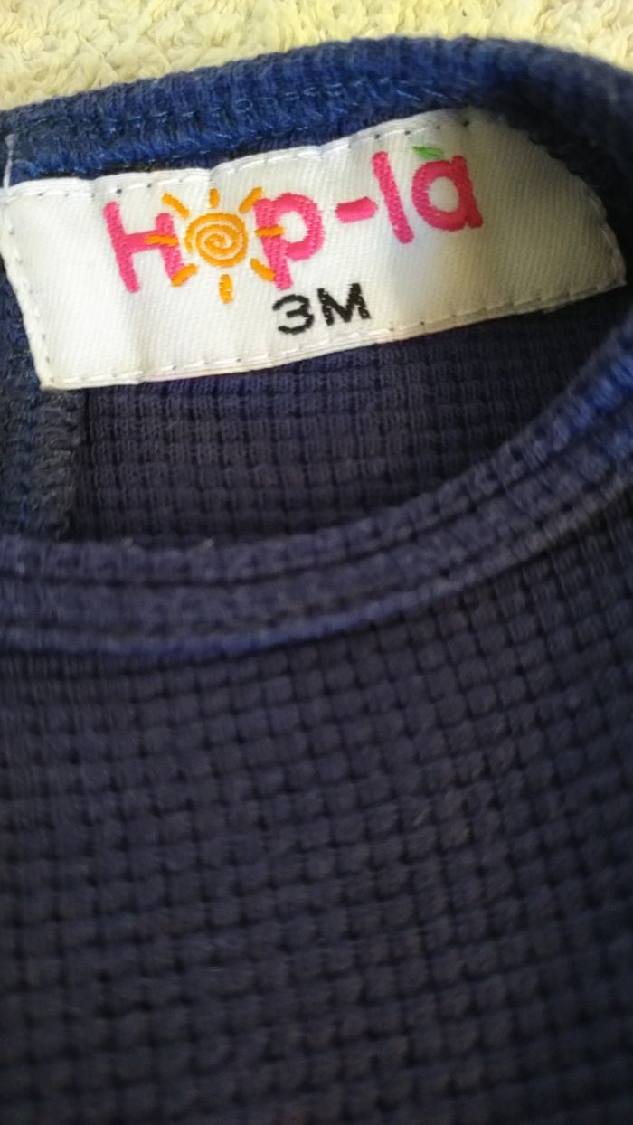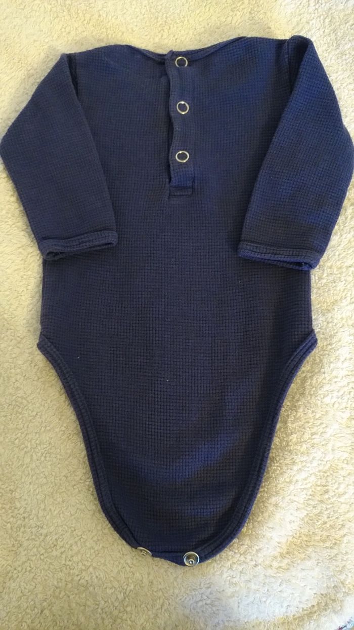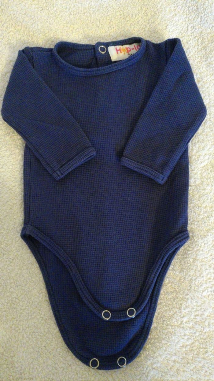 Body de la marque Hop'La, s'adapte idéalement aux couches lavables , l'entrejambe étant un peu plus longue (mais va aussi très bien avec des jetables). Tissu stretch jersey nid d'abeilles très confortable. En excellent état.