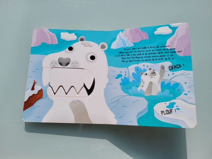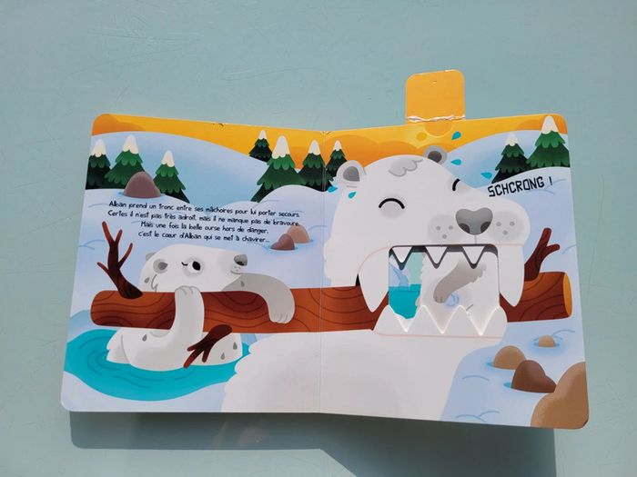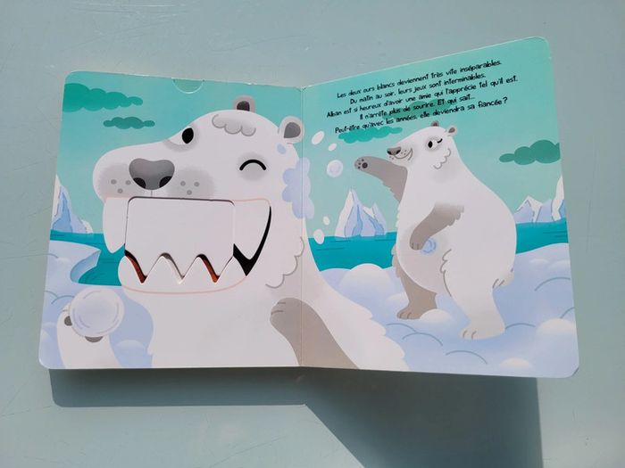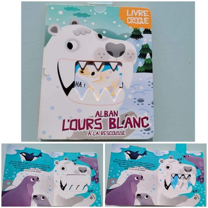 LIVRE CROQUE ALBAN L'OURS BLANC À LA RESCOUSSE Avec ses grandes dents et son air effrayant, Alban l'ours blanc peine à trouver des amis de confiance. Pourtant, de toute la banquise, c'est lui le plus courageux. Et cette qualité pourrait bien faire toute la différence. Oseras-tu mettre tes doigts ? Tirettes abîmées car beaucoup manipulées, sinon en très bon état Mes autres livres enfants : #livreenfantmooglou