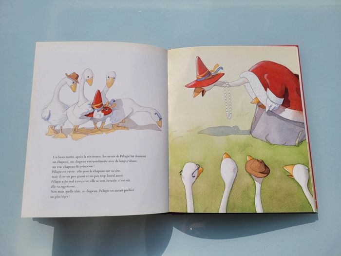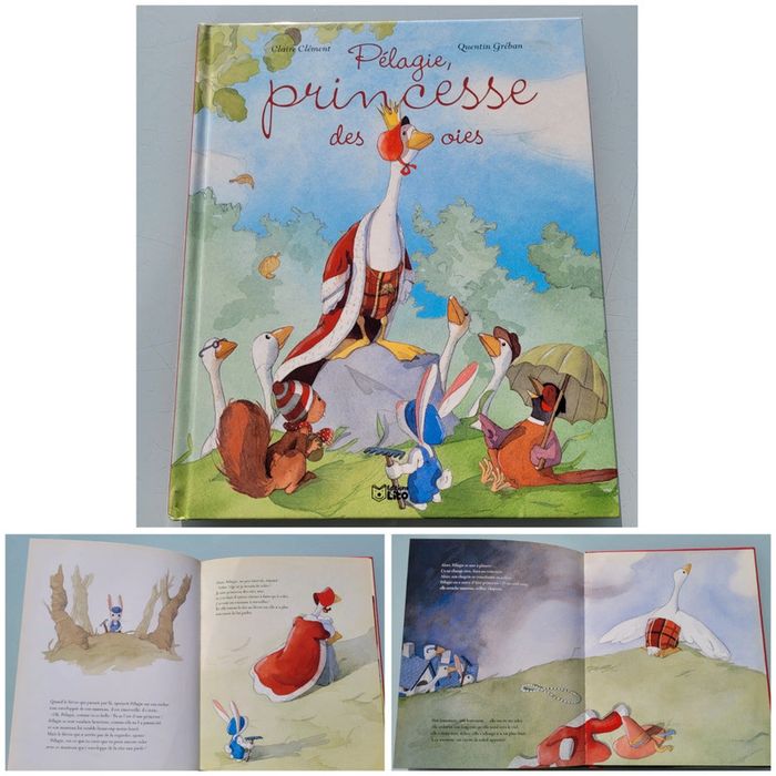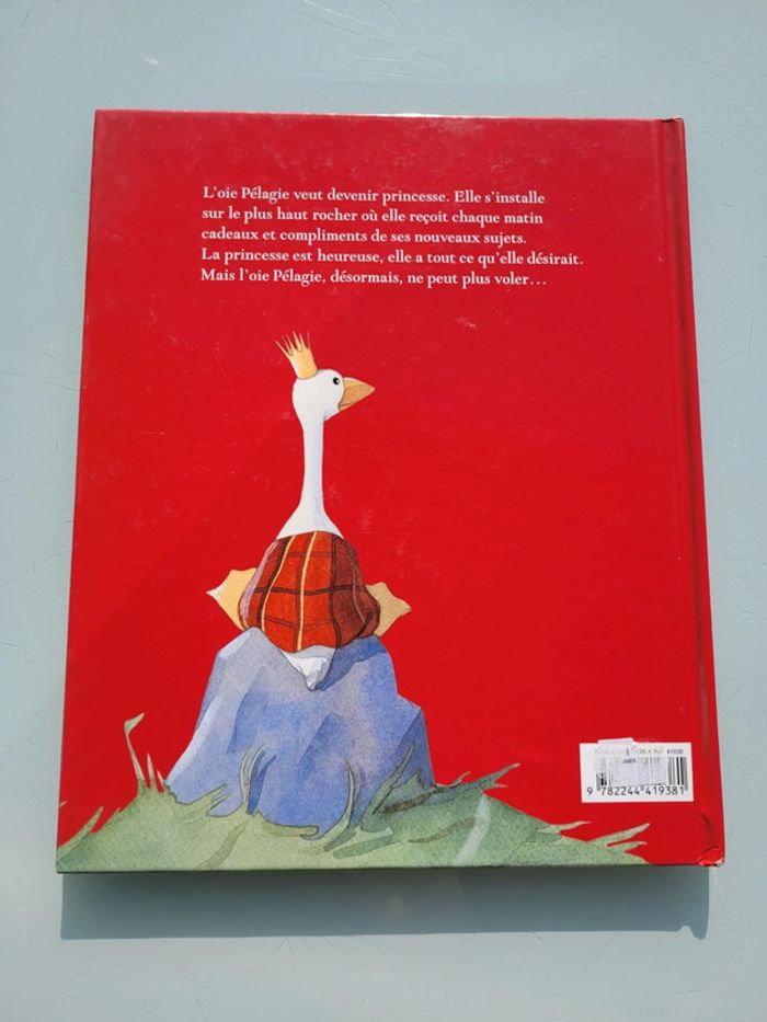 PÉLAGIE, PRINCESSE DES OIES L'oie Pélagie veut devenir princesse. Elle s'installe sur le plus haut rocher où elle reçoit chaque matin cadeaux et compliments de ses nouveaux sujets. La princesse est heureuse, elle a tout ce qu'elle désirait. Mais l'oie Pélagie, désormais, ne peut plus voler... En très bon état Mes autres livres enfants : #livreenfantmooglou