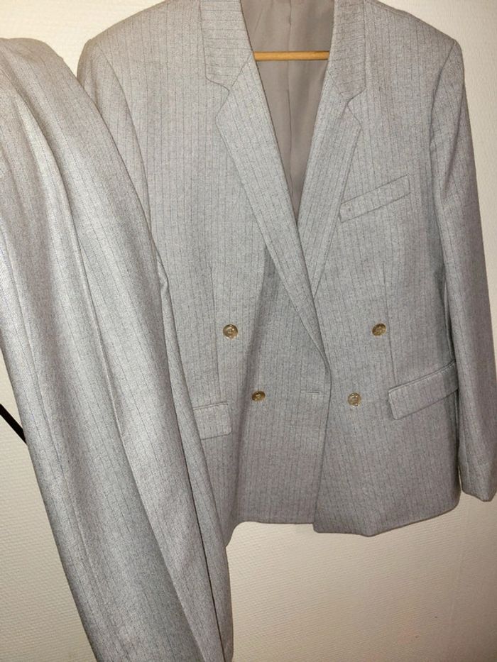Ensemble costume gris rayé pantalon taille 44