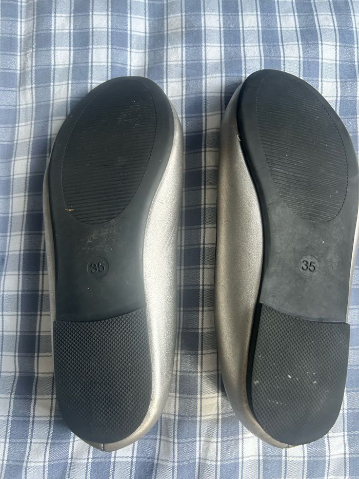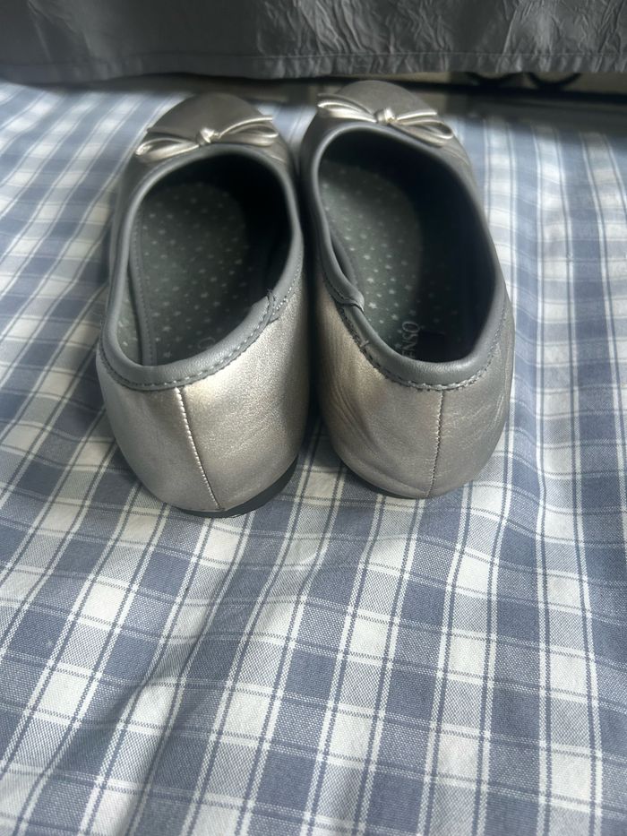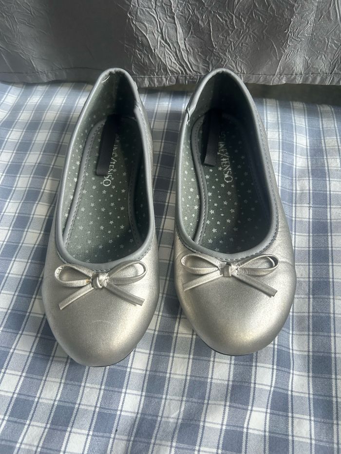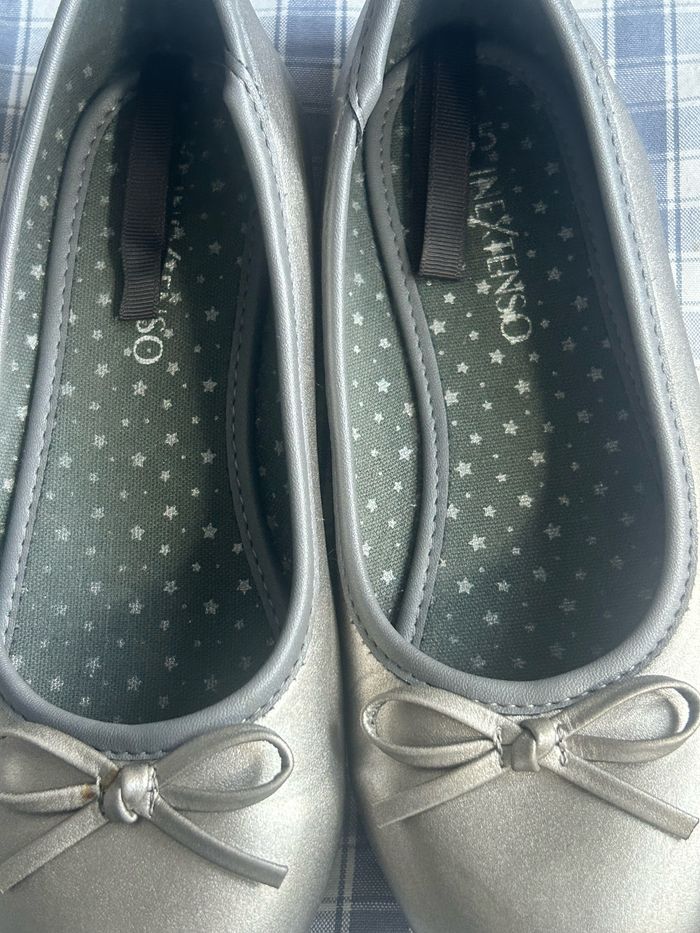 Ballerines classique gris argenté, avec petit noeud déco dur le dessus. Pointure 35 de la marque « Inextenso ». En excellent état car très peu portées.