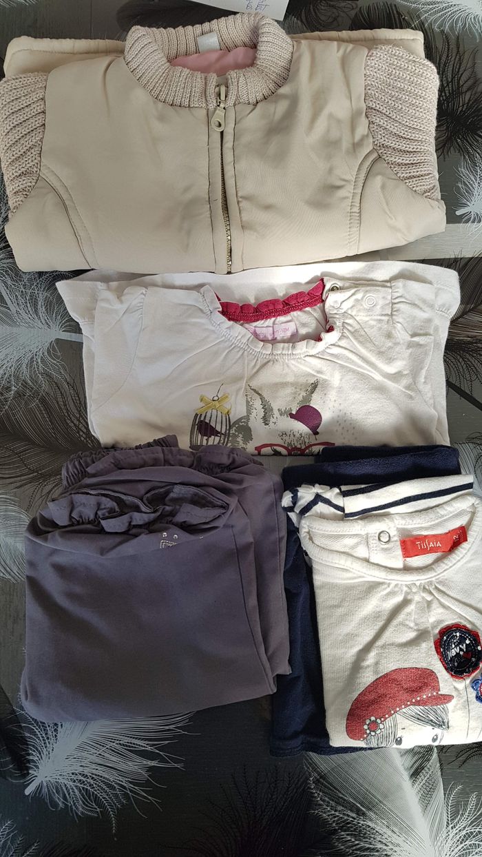 1 ensemble t-shirt, legging et jupe 1 maillot manches longues 1 pantalon 1 gros gilet