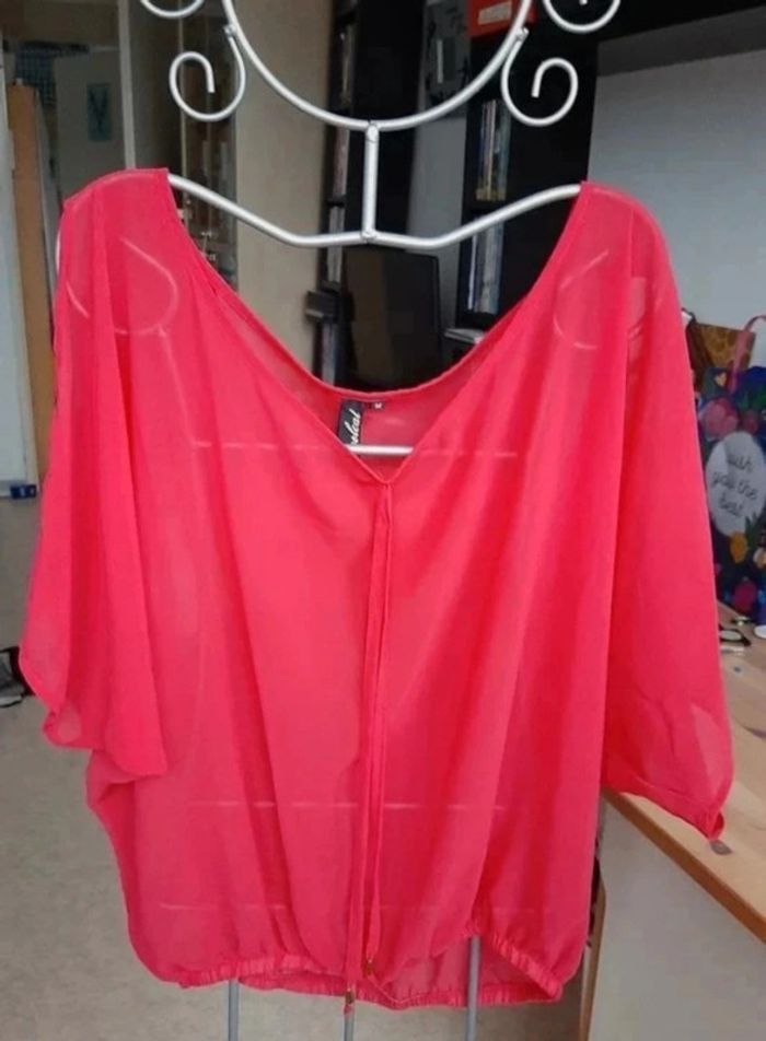 Blouse transparente rose fushia taille M. Coolcat - oversize. Espaces aux épaules. Décolleté. Peu portée, nickelle. Magnifique ! Je la vends au prix de 12 euros. #TailleM38marine