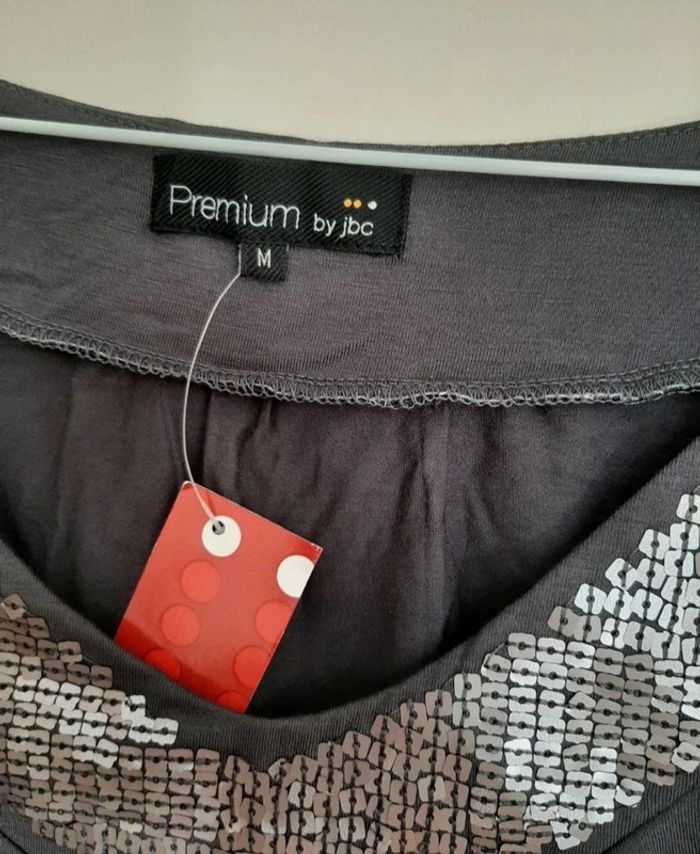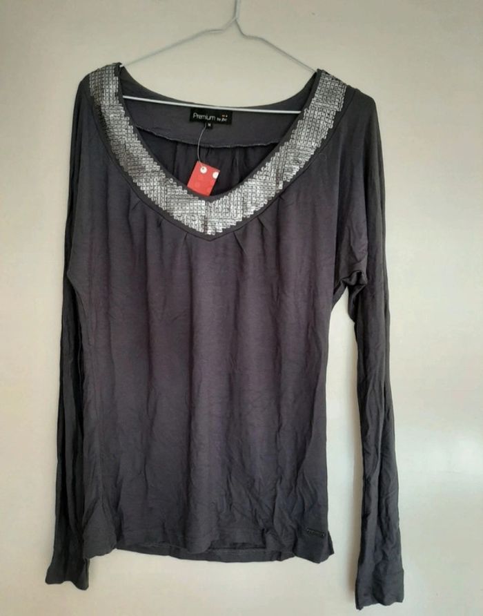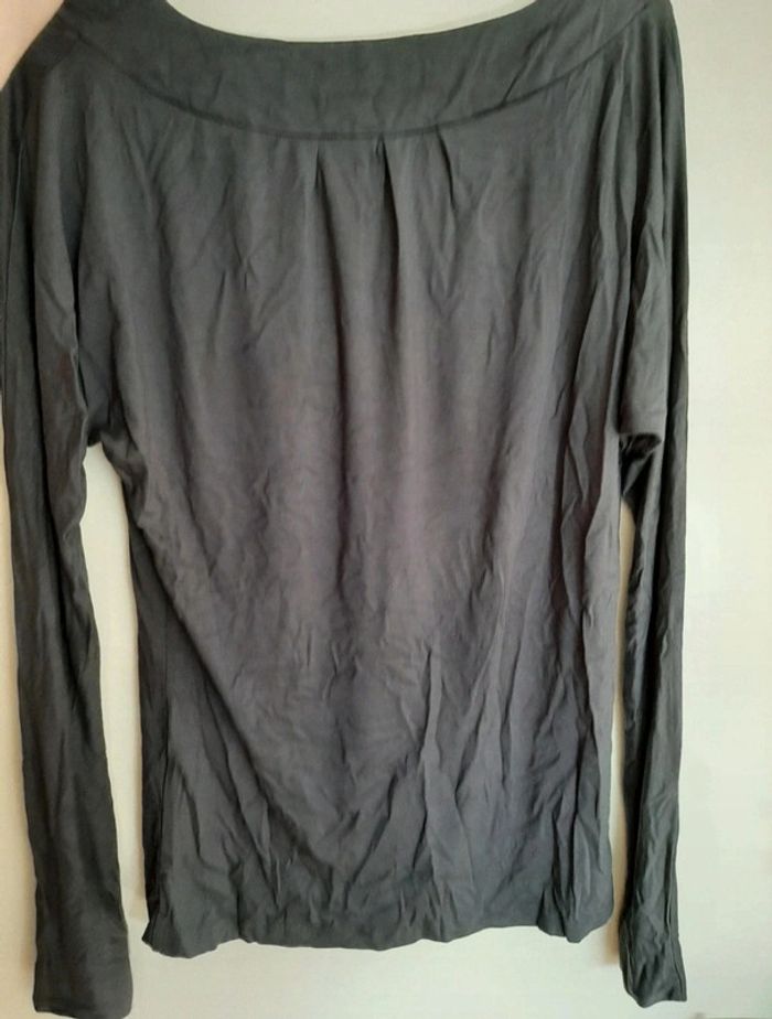Blouse manches longues très douce. Taille M, JBC neuf avec étiquette. Belle couleur grise. Détails sur le col en V. Je la vends au prix de 13 euros. #TailleM38marine