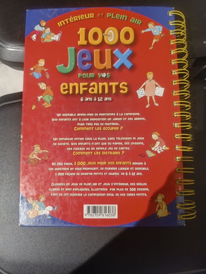 Livre 1000 jeux intérieur et plein air pour vos enfants de 6 a 12 ans. Très bon état. Juste une écriture sur la première page (voir photo). Maison non fumeur.