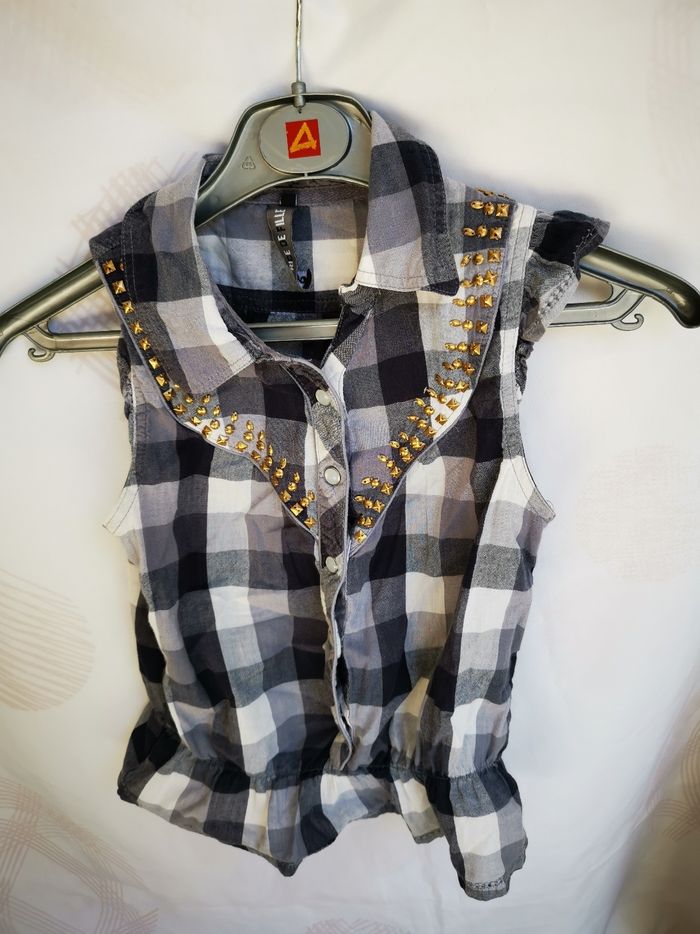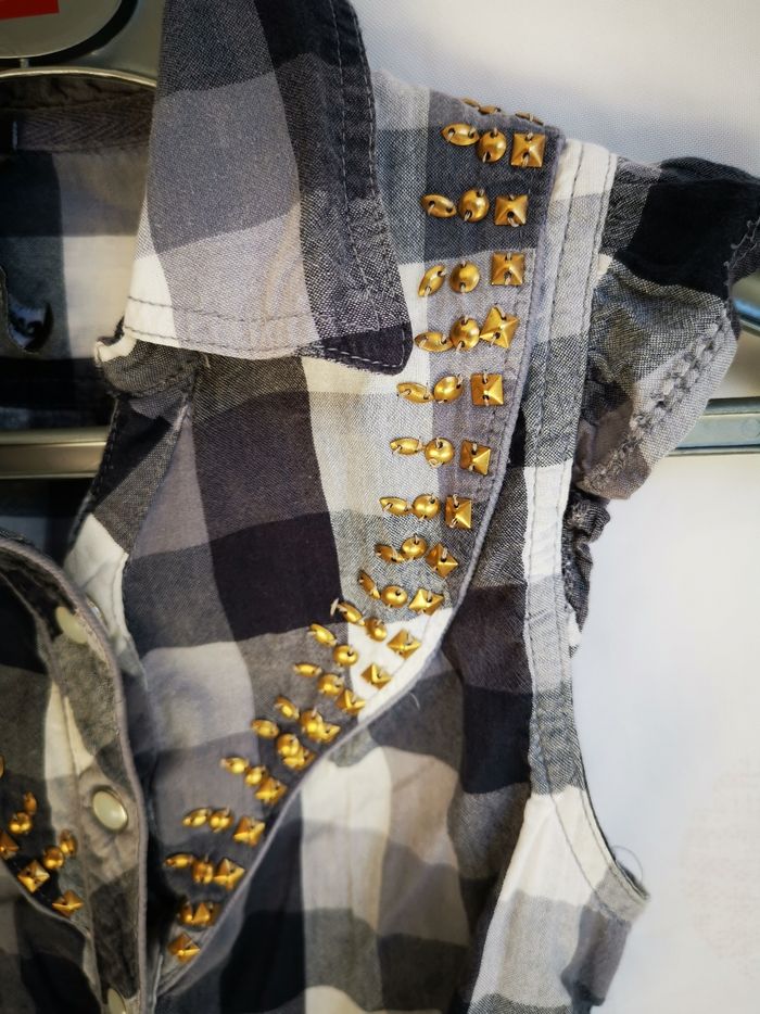 Chemisier sans manches a boutons pressions. Petits clous en déco sur le devant