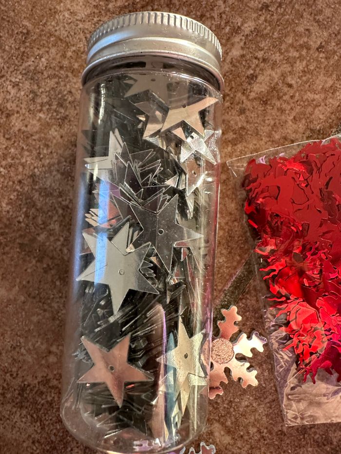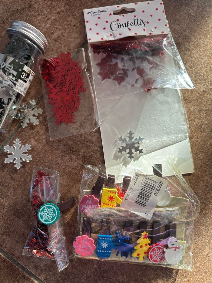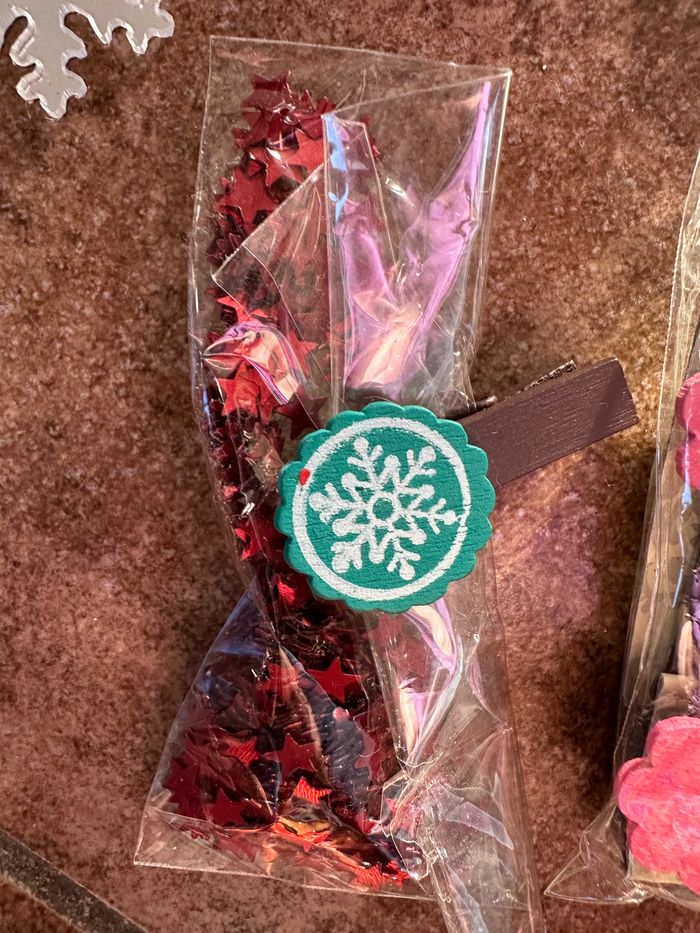 Comprends des étoiles rouges (différentes tailles) et grises (peu ont été utilisés) Des petites pinces décorées dans le thème Quelques flocons de neige ❄️