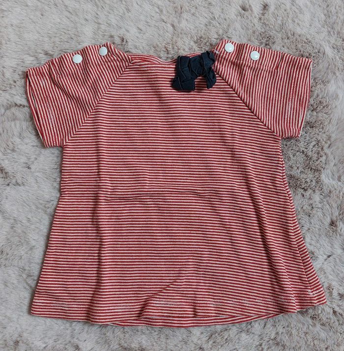 T-shirt marinière rouge et blanche petit bateau. Très bon état. Beaucoup d'articles. N'hésitez pas à faire des lots pour plus de réductions. #18moismanonmasc