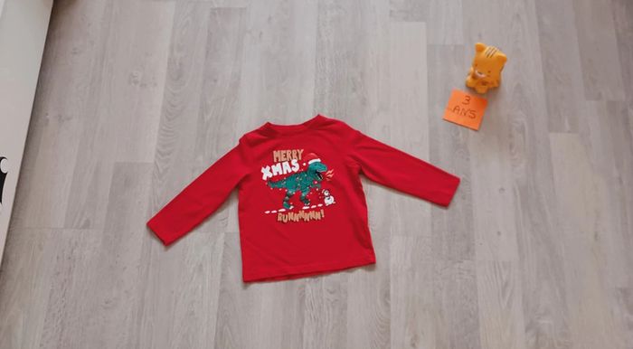 Tee-shirt manches longues garçon dinosaure Noël taille 3 ans - photo numéro 1