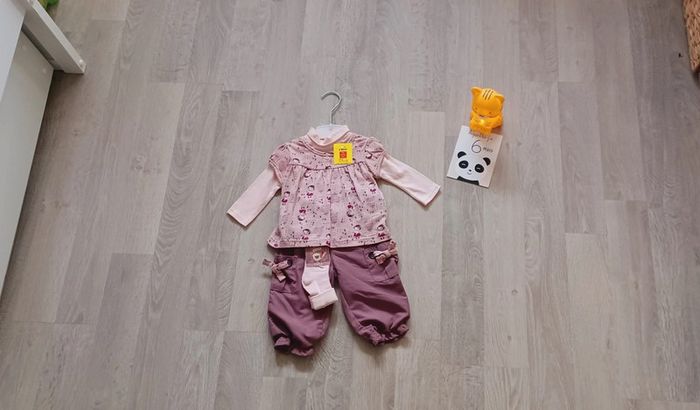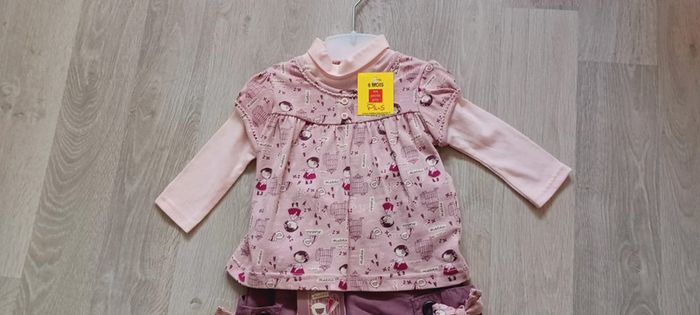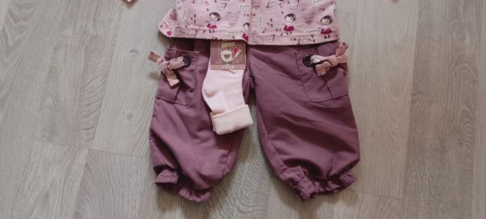 Ensemble bébé fille 3 pièces taille 6 mois : Sous-pull + pantalon + chaussettes neuf avec étiquette - photo numéro 2
