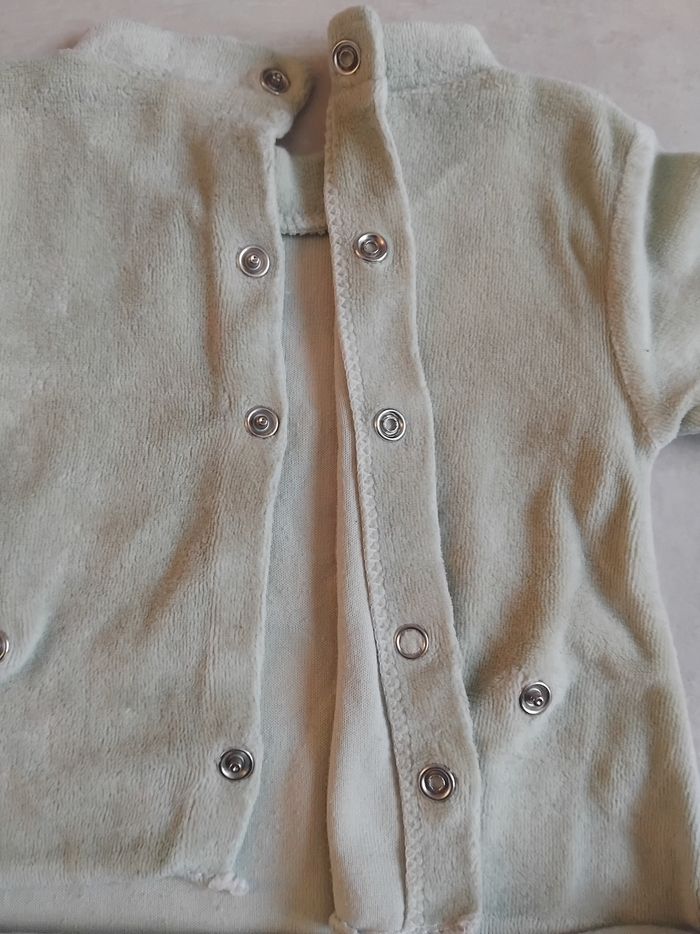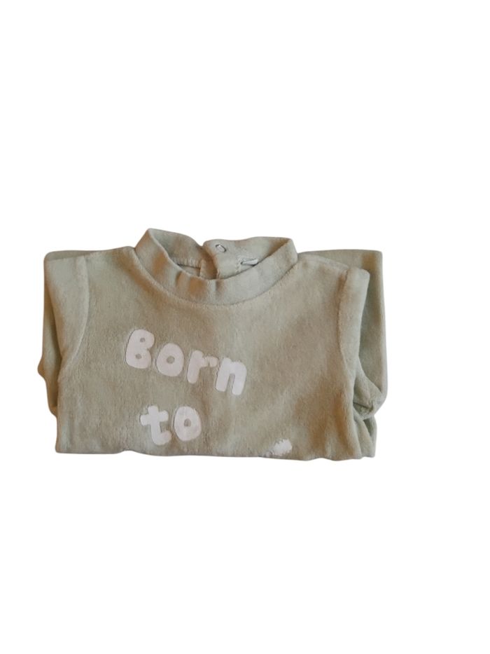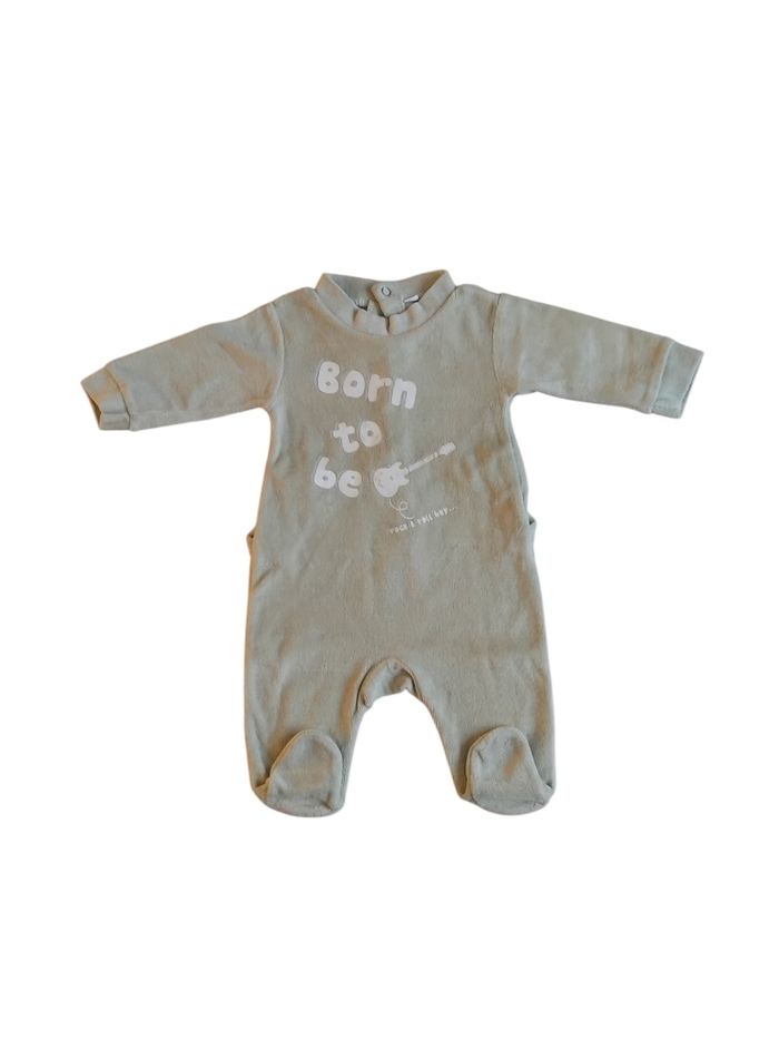 Pyjama velours de couleur vert clair. Peut convenir aussi bien aux garçons qu' aux filles. Inscription born to be avec le motif d'une guitare rock n' roll. Ouverture pression sur l'arrière. #bébéfille1moisnade3033 #vêtementmixtenade3033