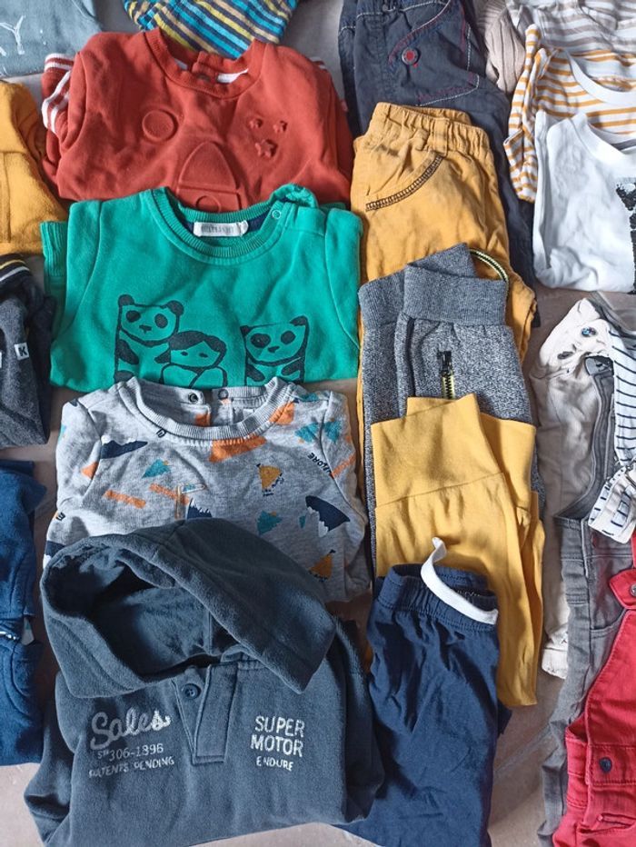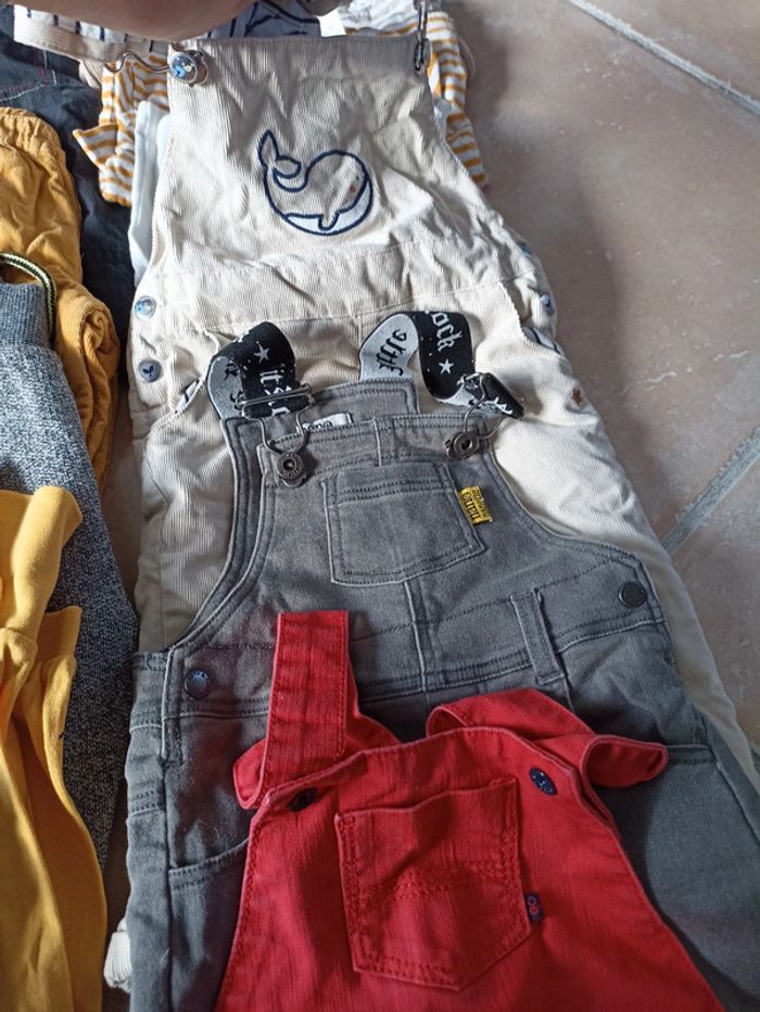 En excellent état voir neuf. Comprend: 3 salopettes 3 t-shirts manches longues 2 Polo manches longues 3 pulls 1 sweat capuche 1 cardigan 3 gilet capuche zippé 1 blouson réversible 5 pantalons 4 pyjamas 3 bodys offerts Petit bateau, noukies, dpam, tao, Kiabi, ....