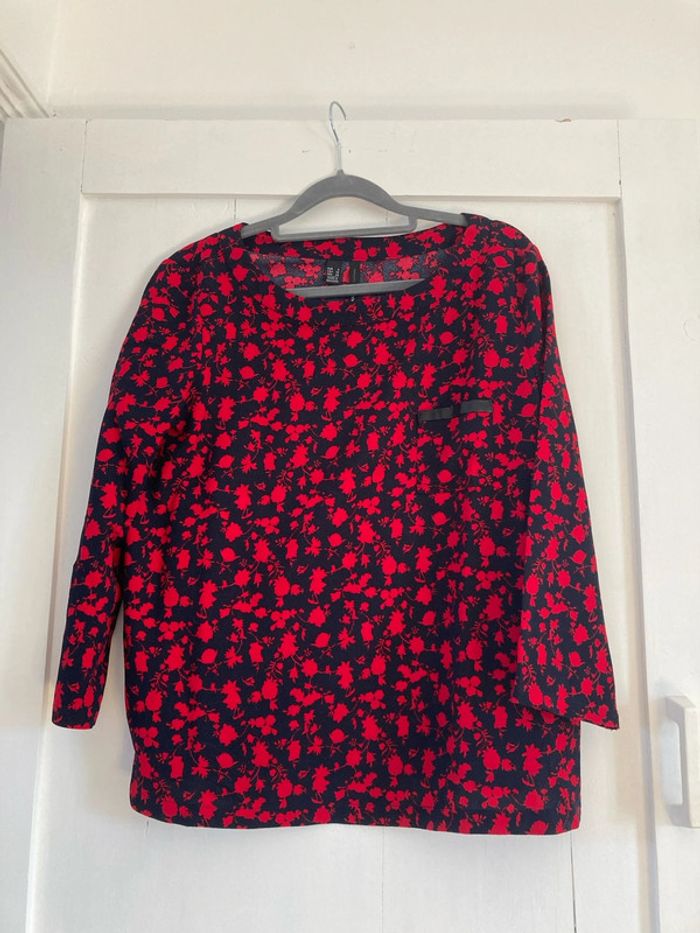 Blouse rouge et noir fleurie mango - photo numéro 1