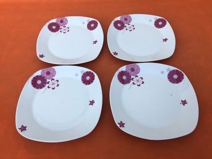 4 assiettes plates en porcelaine  La Collection  Julia.L Caractère