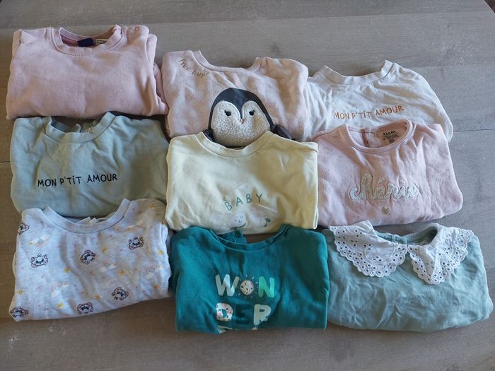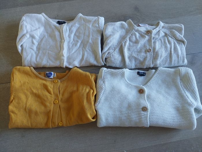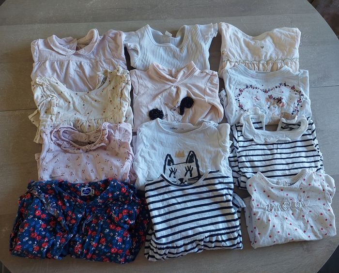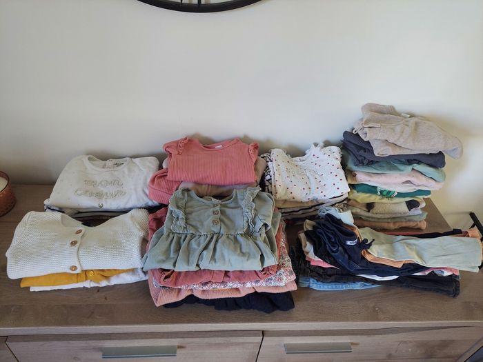 Lot en tres bon etat 59 articles 24 mois 4 gilets 1 pull 13 sweats 8 robes 1 salopette short 15 hauts 6 jogging 7 legings 4 pantalons