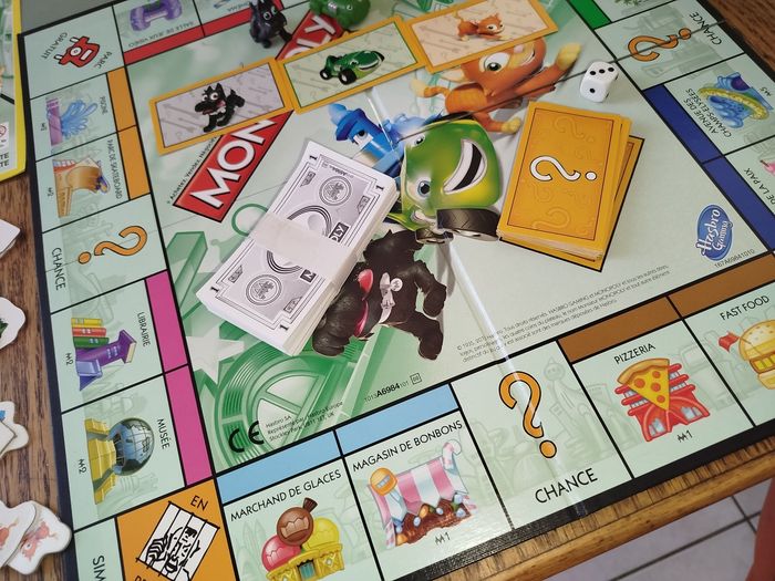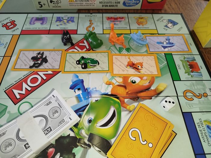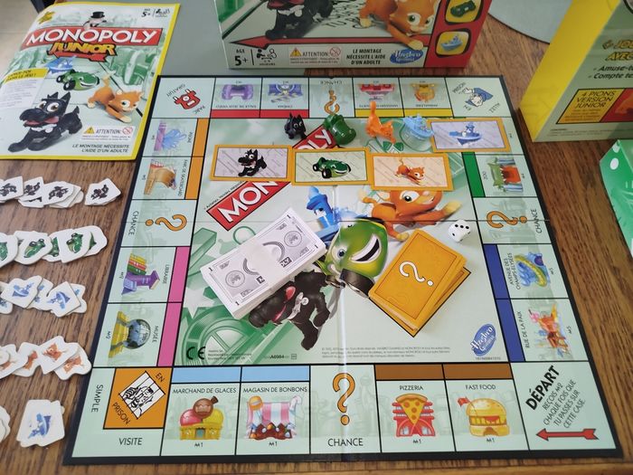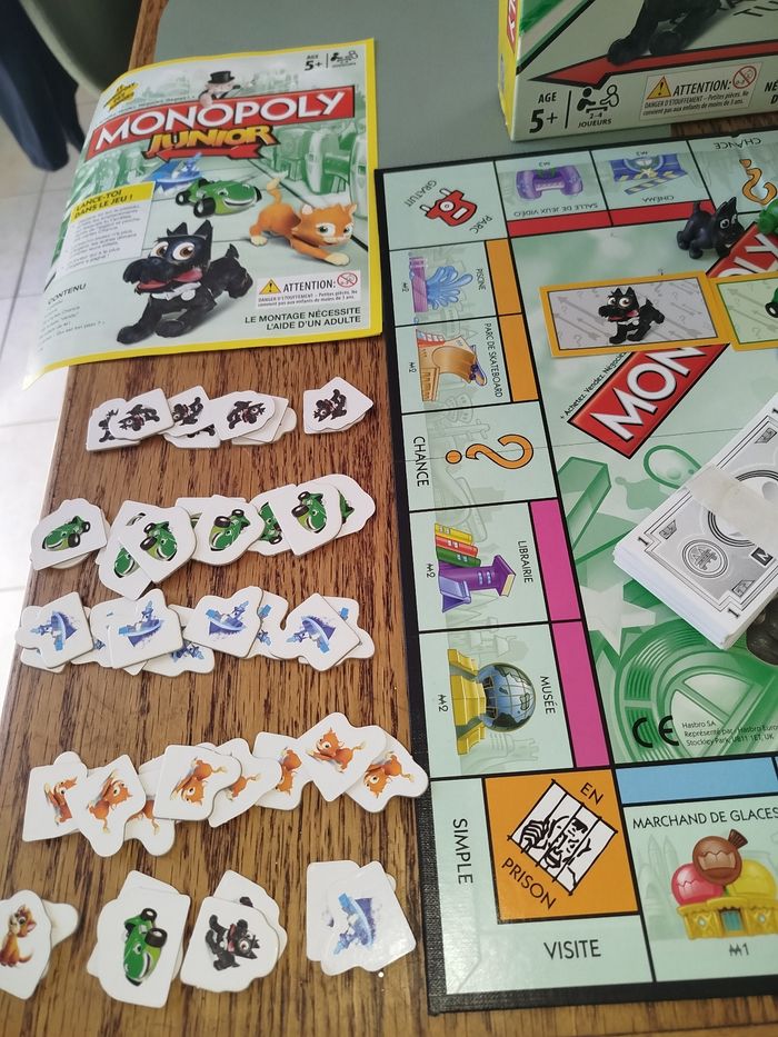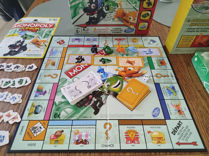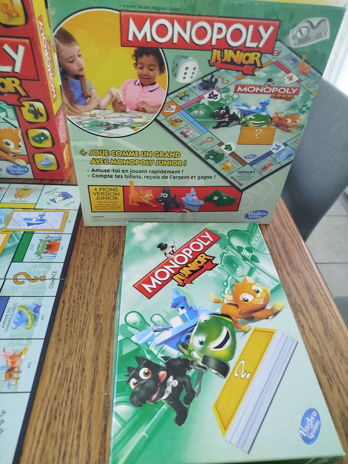 Monopoly junior État : excellent état Marque : Hasbro gaming Âge : 5+ 2-4 joueurs Joue comme un grand avec Monopoly junior Amuse-toi en jouant rapidement ! Constipé, reçois de l'argent et gagne ! Contenu : un plateau, 4 pions, 20 cartes chance, 48 tickets « vendu », 90 billets de 1 million, un des , 4 cartes « qui est ton pion » et la notice Boîte en excellent état Complet : 🙂 oui N'hésitez pas à visiter mon dressing je fais un grand vide dans la salle de jeux de mes enfants ainsi dans les vêtements, grosse promotion en lot, avec un envoi dès le jour même...