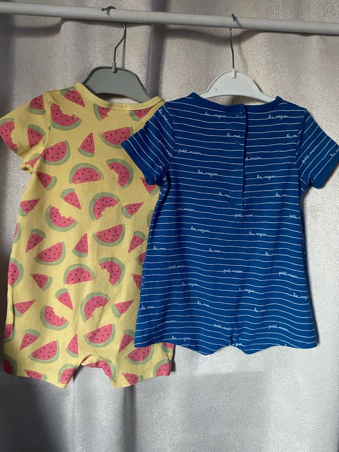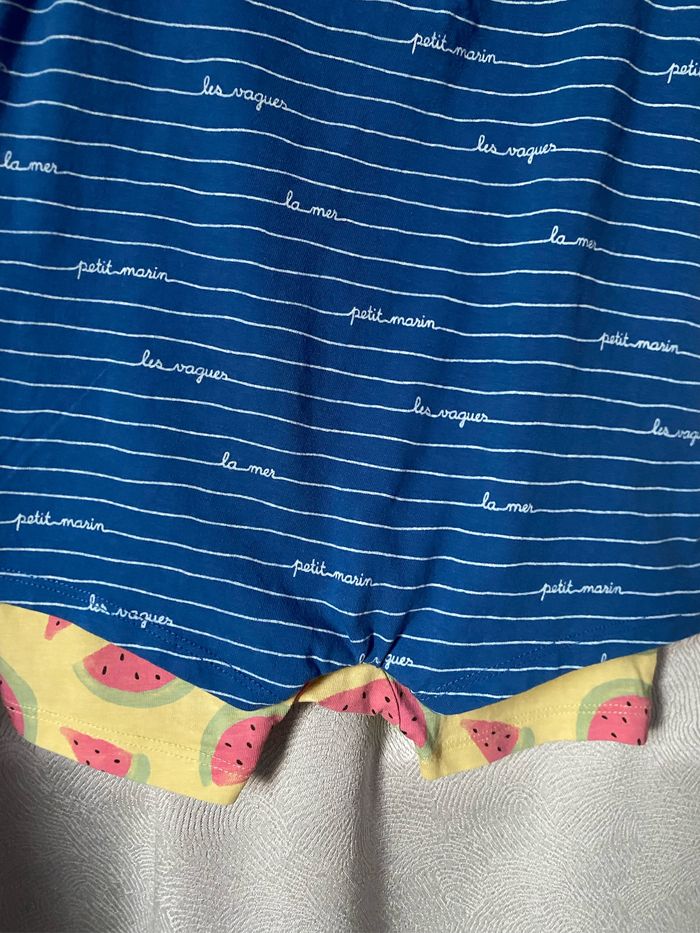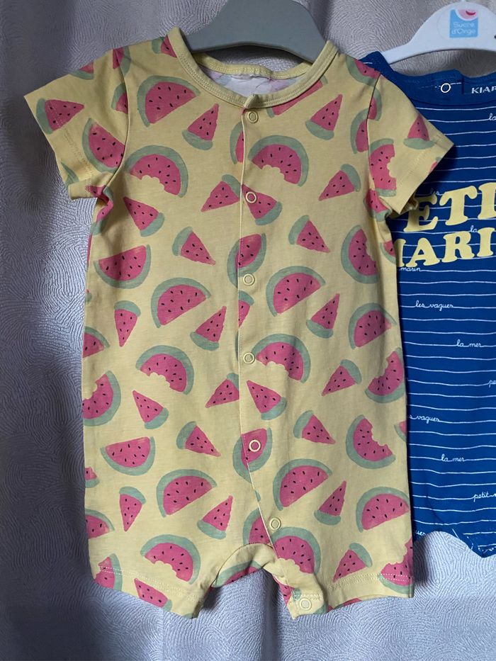 2 combi shorts Un bleu rayé petit marin/jaune 18 mois 81 cm Kiabi Le jaune imprimé pastèque n’a plus d’étiquette 100% coton