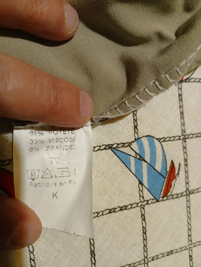Pantacourt taille élastiquée T2/3, très bon état. 61% polyester, 33% viscose, 6% spandex