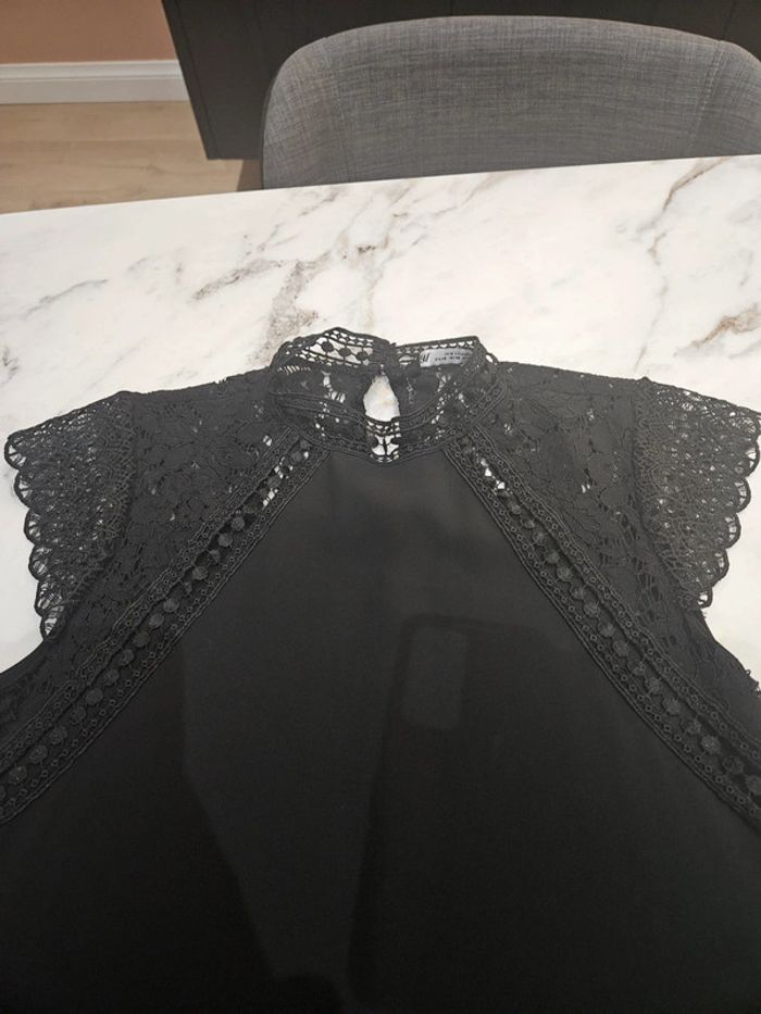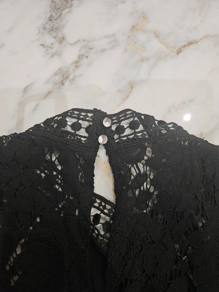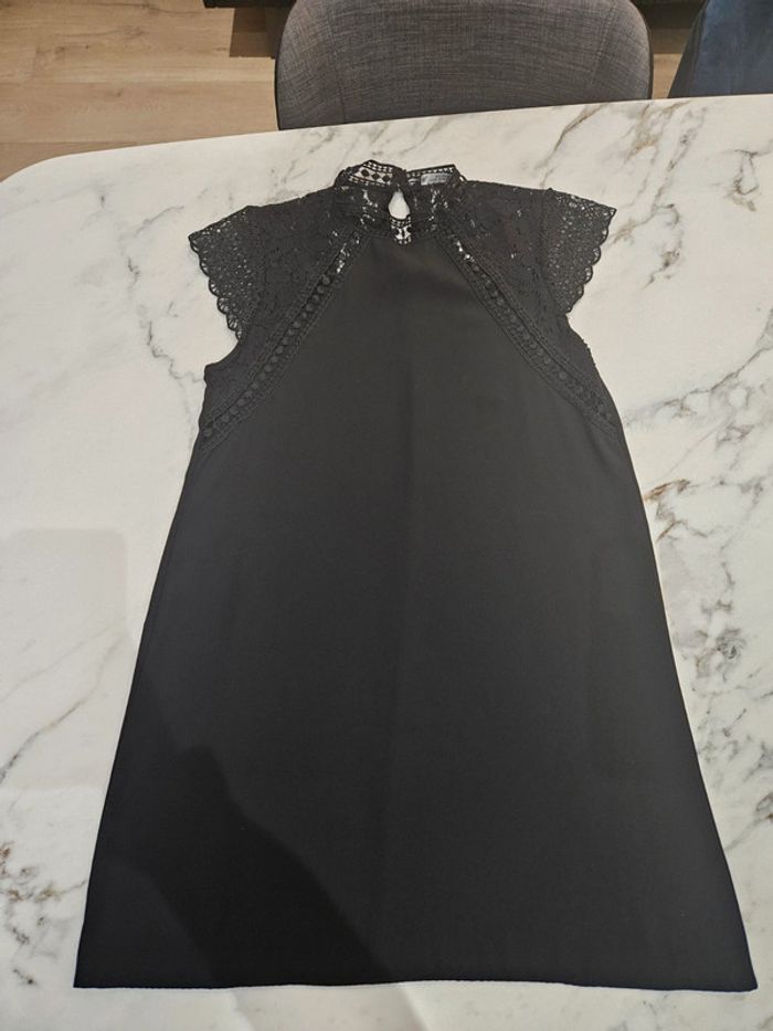 Robe habillée XS mais peut correspondre à un S également. Est ample, haut en dentelle et se ferme à l'arrière par 2 boutons brillants. Neuve, lavée et étiquette interrieure coupée mais jamais portée