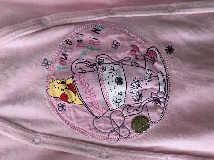 Très jolie grenouillère fille manches longues avec ouverture à l'avant. Motif Winnie l'Ourson Marque Disney Taille 12 mois