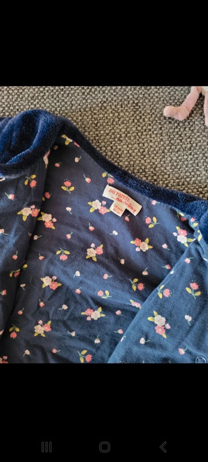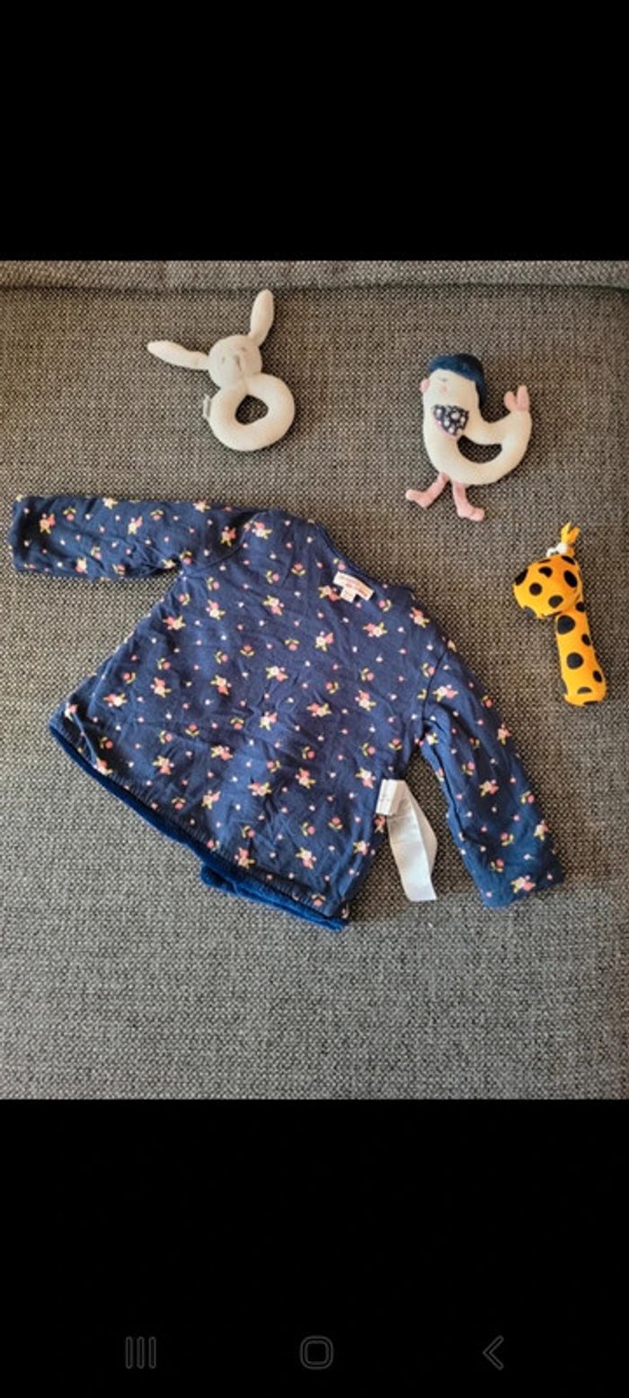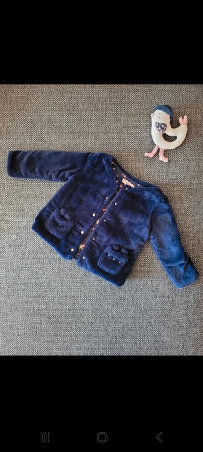 Magnifique veste pour fille réversible de la marque Du Pareil Au Même et de taille 18 mois Un côté fausse fourrure bleue marine et un côté tissu bleu marine fleuri Veste chaude avec très beau rendu 2 poches à l'avant tête de lapin Fermeture par pressions cœurs Aucune tâche ni trou. Le tissu intérieur a un peu passé aux lavages mais la fourrure est en parfait état. #mabi38780fille18mois