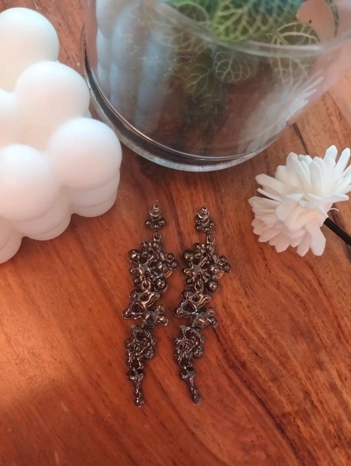 Sublimes boucles d'oreilles longues noires - photo numéro 3
