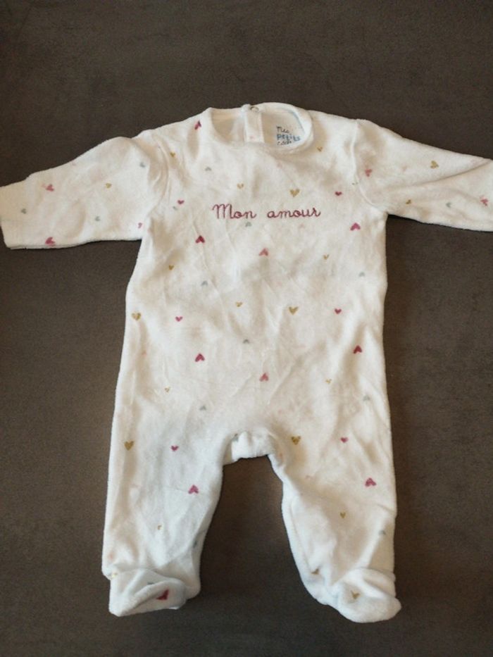 Pyjama 3 mois (59cm) imprimé cœur à message "Mon amour" Marque : mes petits cailloux #alm1208fille3mois