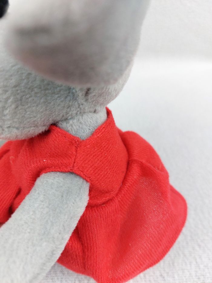 Peluche souris grise rose à suspendre Play by play toys 2008 robe rouge 23 cm Très bon état, petite couture légèrement défaite en haut de la robe (photo 4) la peluche n'est pas prévue pour un enfant en bas âge Envoi soigné et rapide Réf A11089
