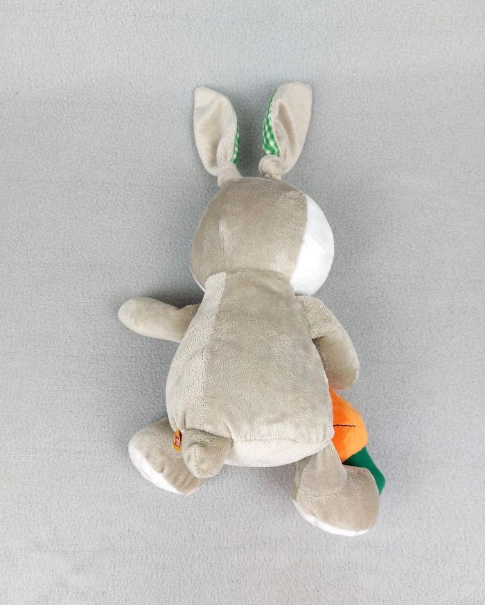 Peluche doudou lapin lapi choco gris blanc FIZZY carotte orange carreaux vert - photo numéro 1