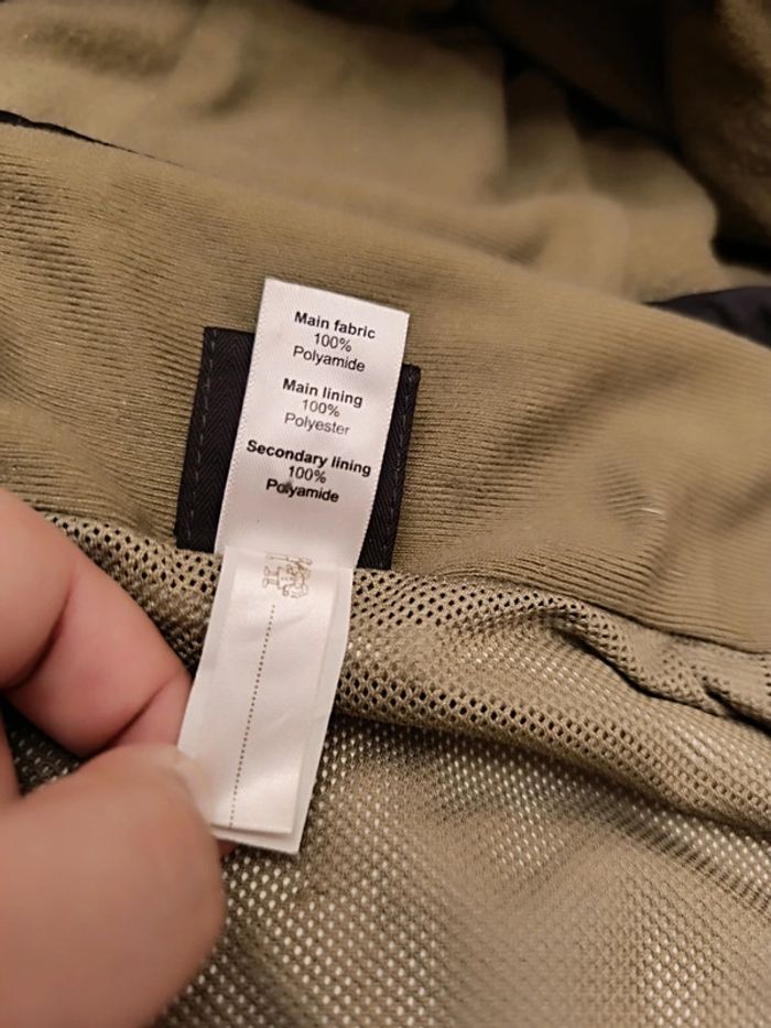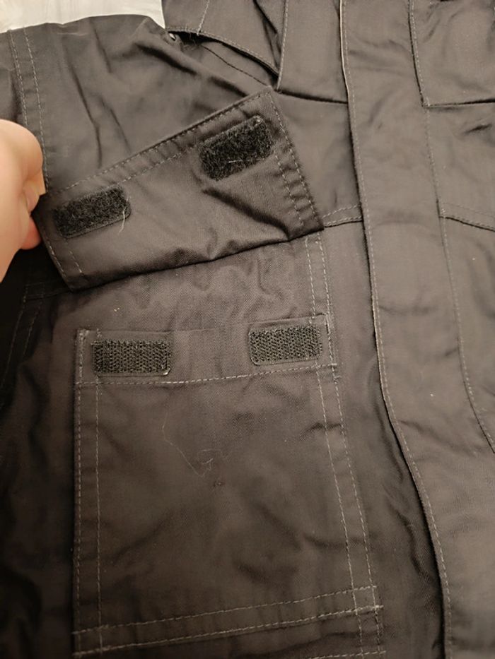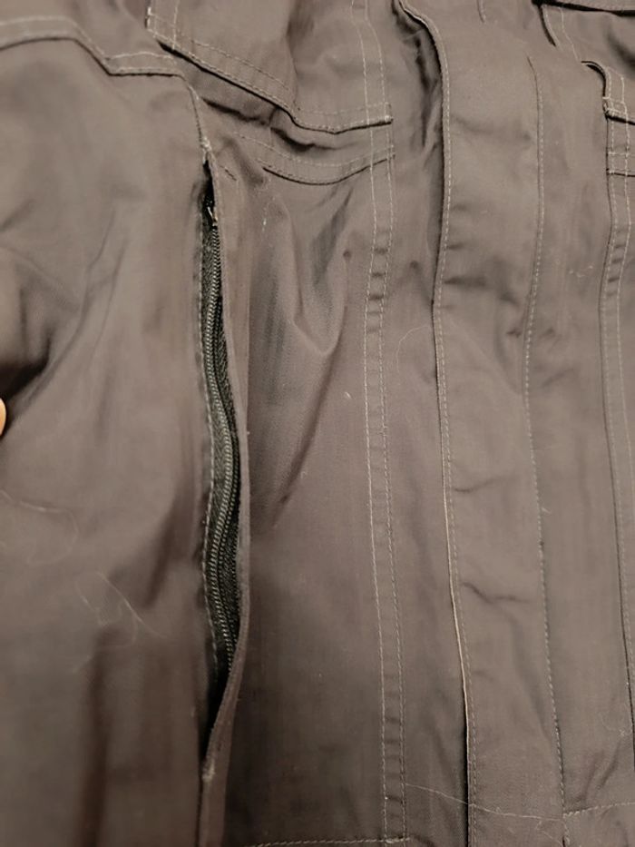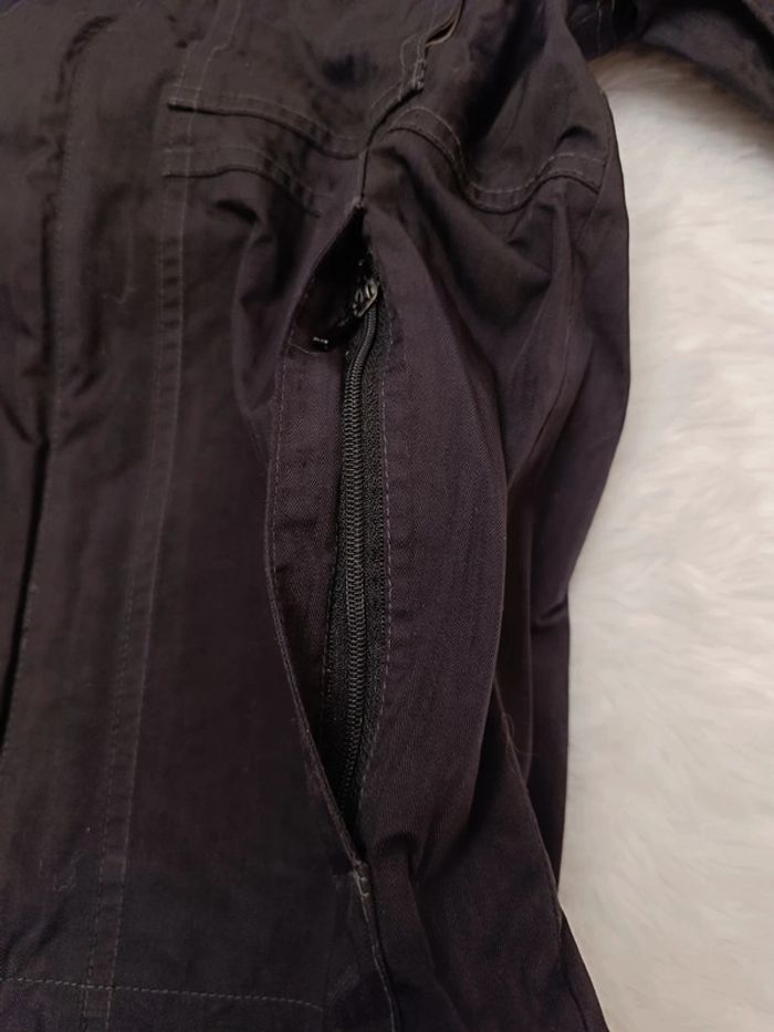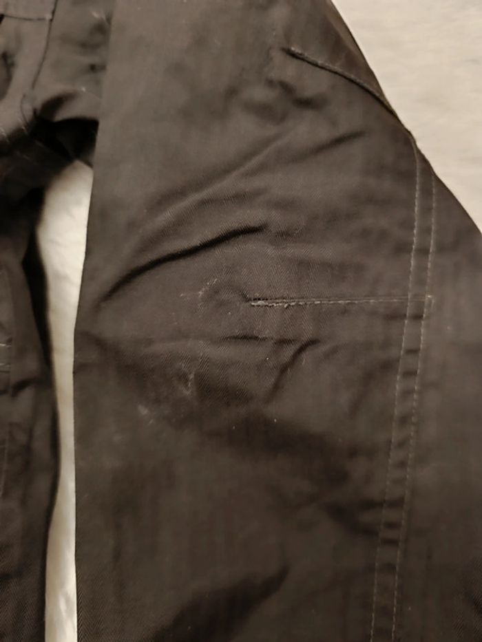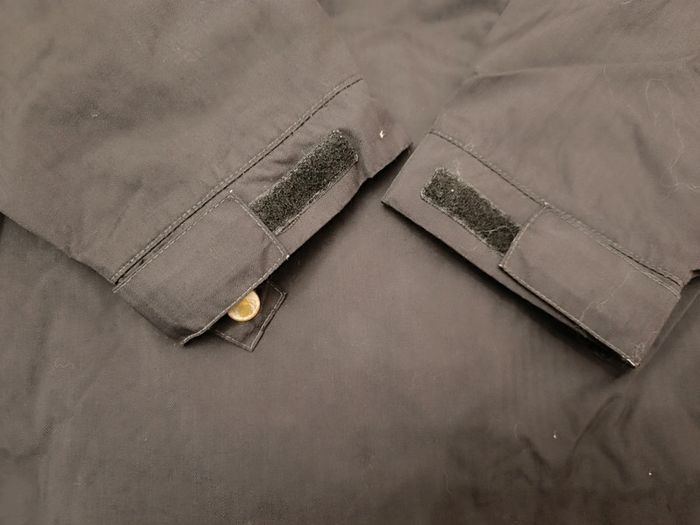 État : Très bon à bon, élastiques aux poignets détendues mais resserable par scratch. Traces au coude gauche. Cf photos.