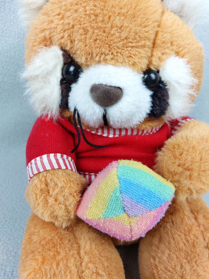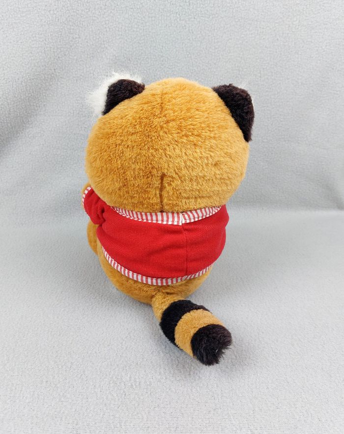 Peluche doudou panda roux orange blanc noir CACI balle grelot tee-shirt rouge - photo numéro 1