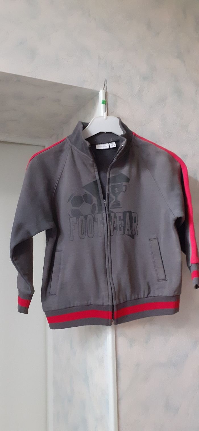 Vends un gilet zippé en coton et polyester gris et rouge kiabi 6 ans
