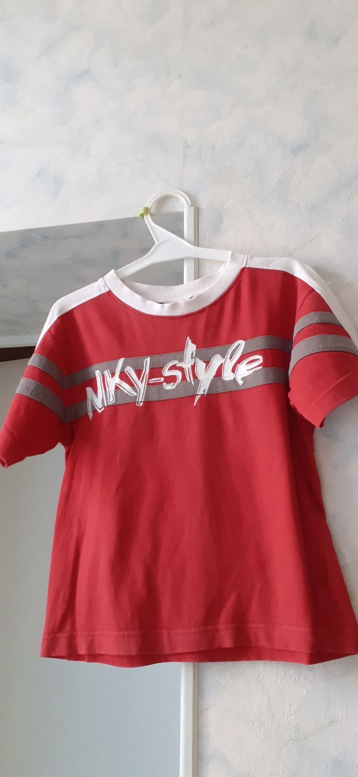 Vends un tee-shirt manches courtes en coton rouge et blanc Kiabi 6 ans