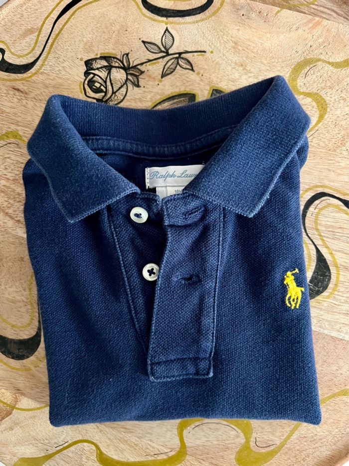 Polo RALPH LAUREN 18 mois - Bleu marine , Logo Jaune - manches courte - Articles portée quelque fois - AUCUN DÉFAUTS