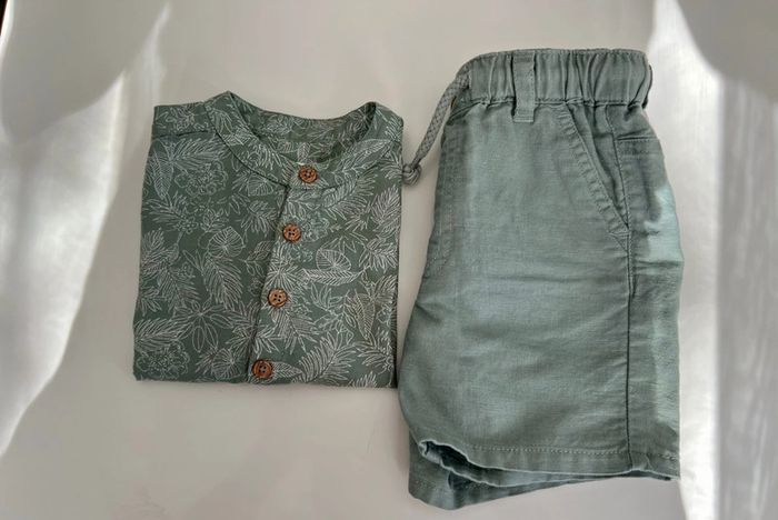 Ensemble GÉMO en lin vert d’eau Taille 18 mois Porter 2 fois 🥲