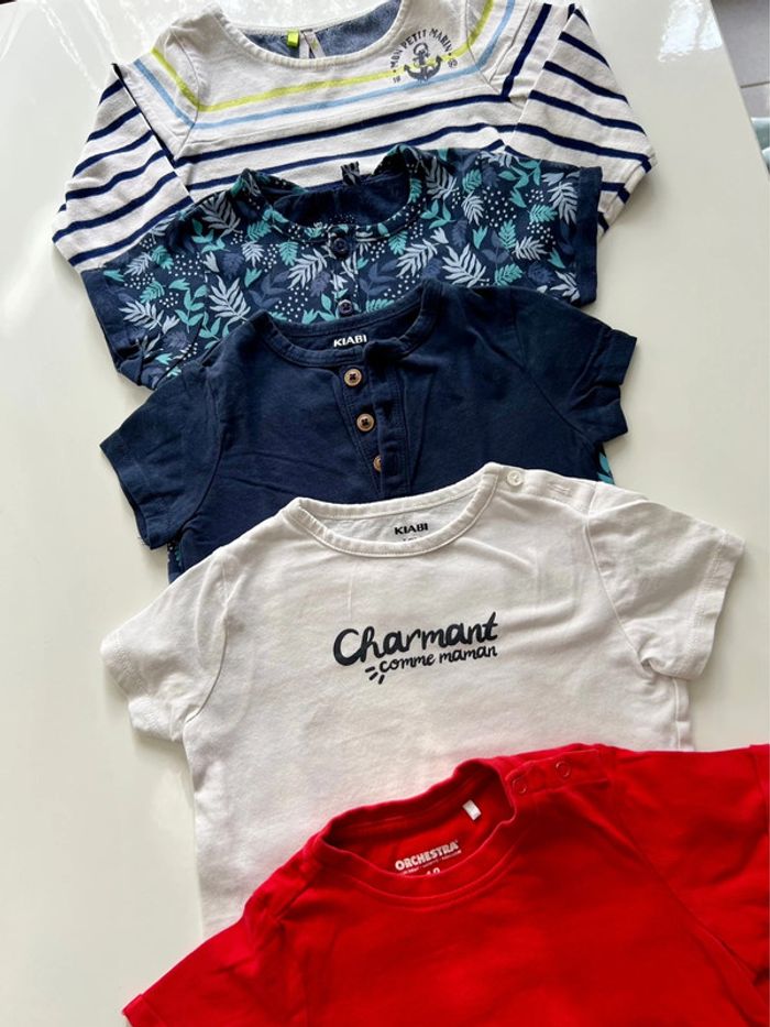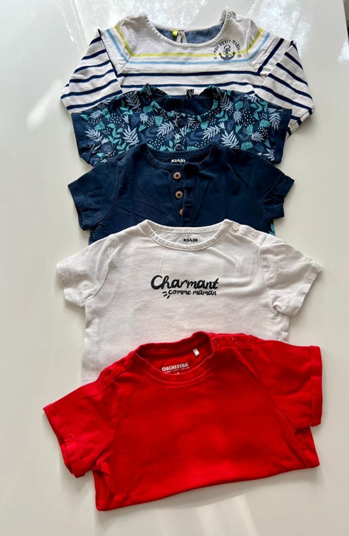 Lots de 5 Tshirts coton manche courte ( la marinière manche longues ) Marques : Kiabi et Orchestra Taille : 12 MOIS UNIQUEMENT ( 74 cm ) En parfait état ☑️ #kiabi #bebegarcon