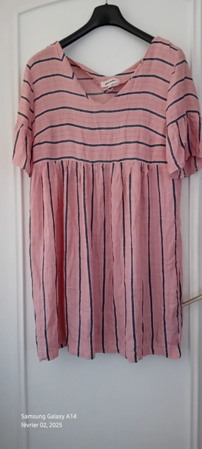 Robe tunique en viscose à rayures rose et noir femme 42 grain de malice