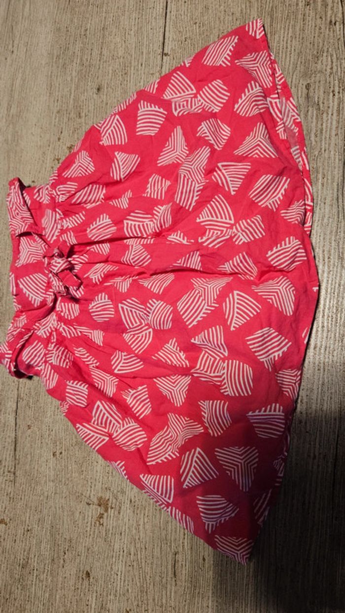 Jupe courte fushia à dessin blanc, Okaïdi, 6 ans, nickel