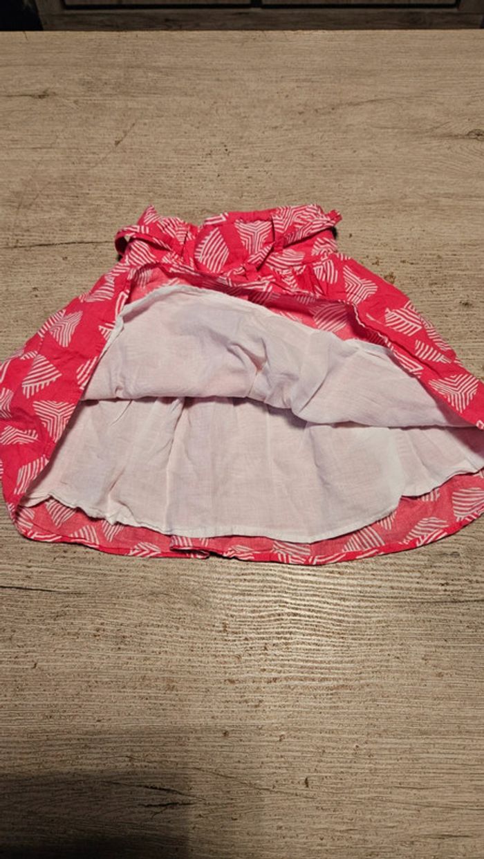 Jupe courte évasée, élastique à la taille. Doublée donc pas transaprente. Avec un lien à nouer. Etat impeccable car juste essayée et lavée. Taille 6 ans et semble bien convenir #deborahtock_6ans