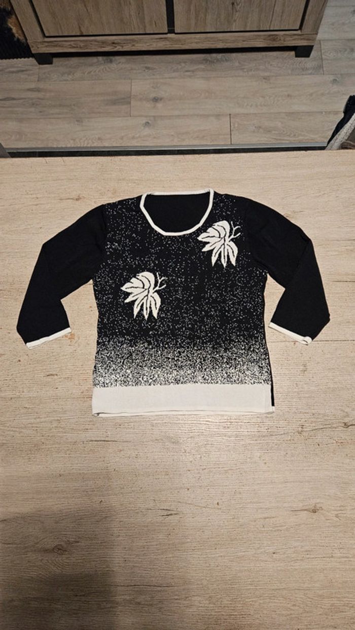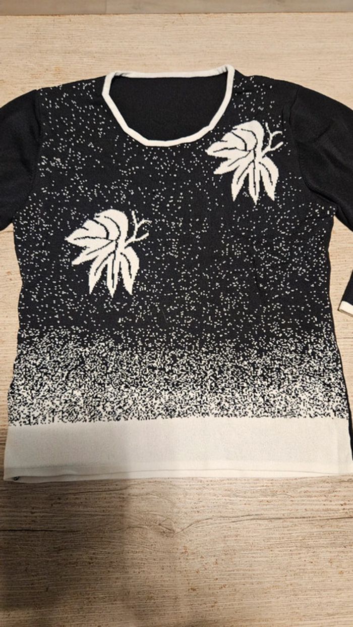 Pull noir et blanc à manches 3/4, col rond, taille S/M, peu mis - photo numéro 1
