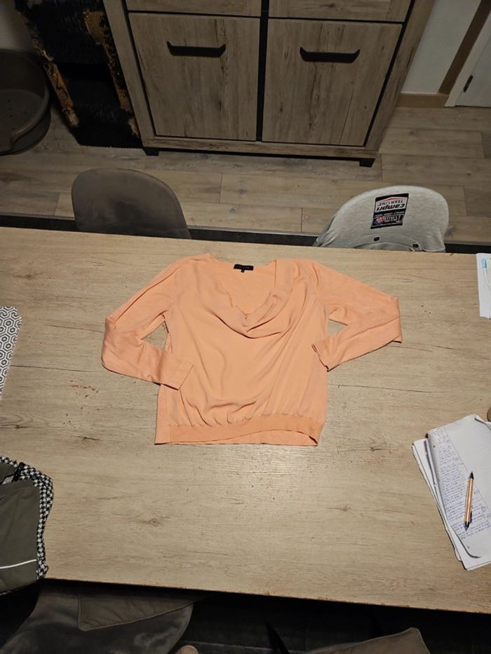 Pull léger à manches longues, orange très clair, col large, double matière. Lola Liza, taille 40 - photo numéro 8
