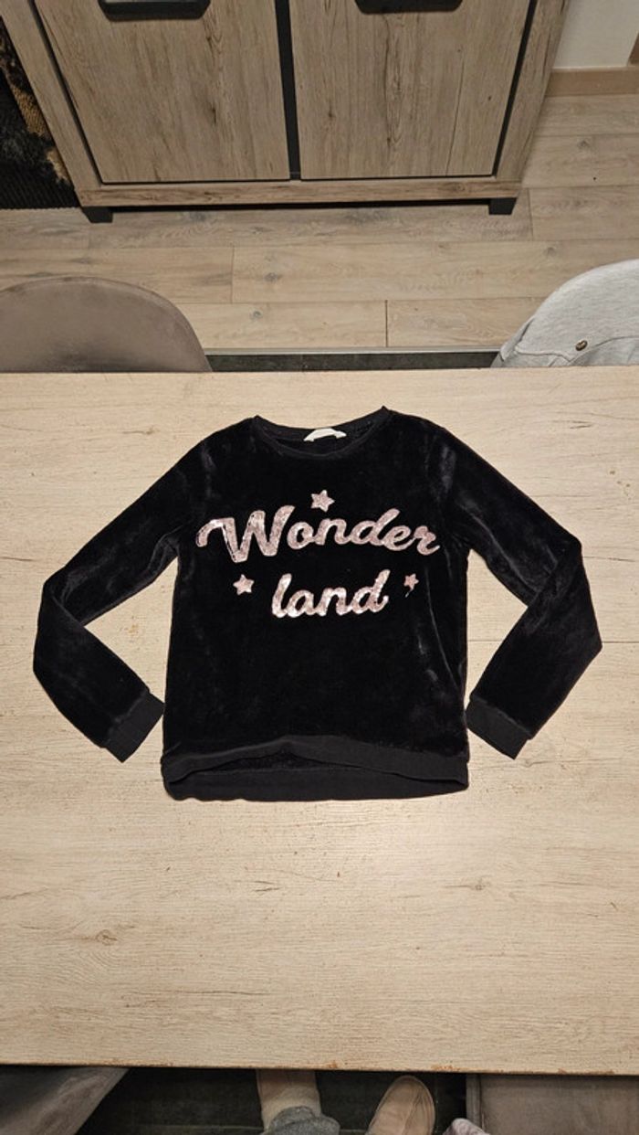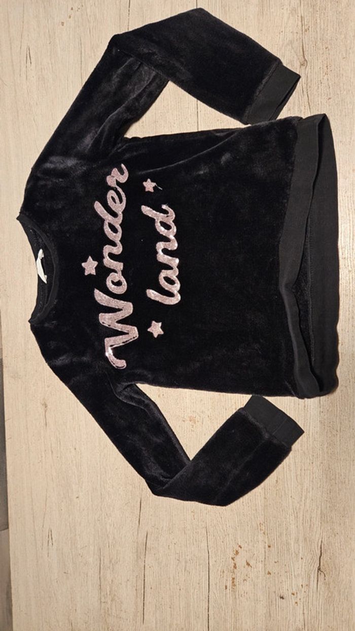 Pull ado tout doux. Col rond. Il est en excellent état car très peu mis. Il est noir avec des inscriptions en sequins rose clair. Convient bien pour du 12 à 14 ans #deborahtock_12ans #deborahtock_14ans