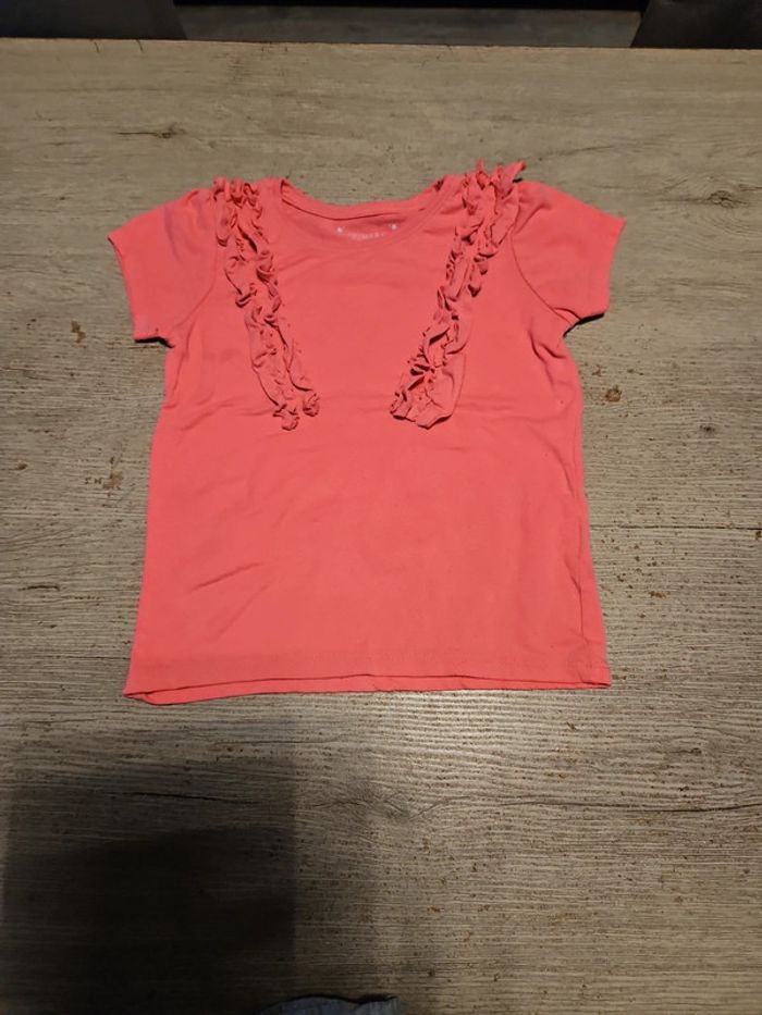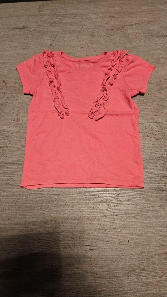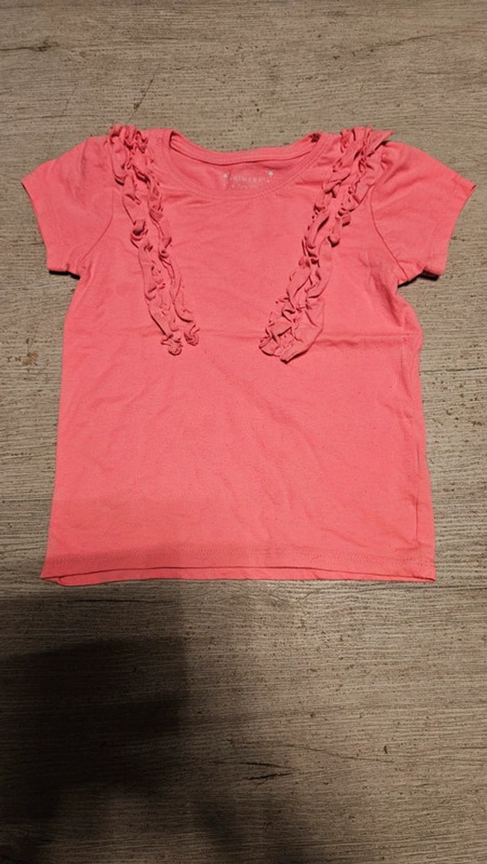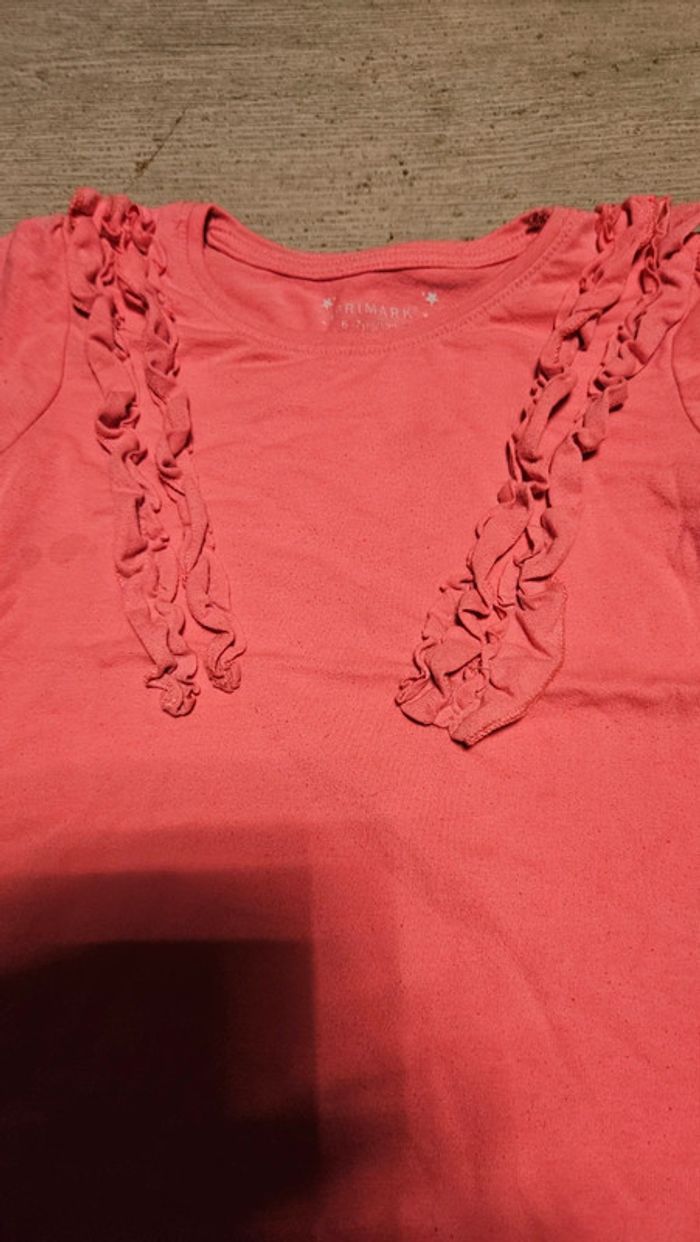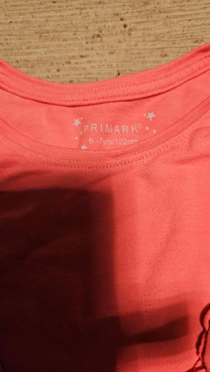 T shirt rose fushia à manches courtes avec froufrous, Primark, 6/7 ans