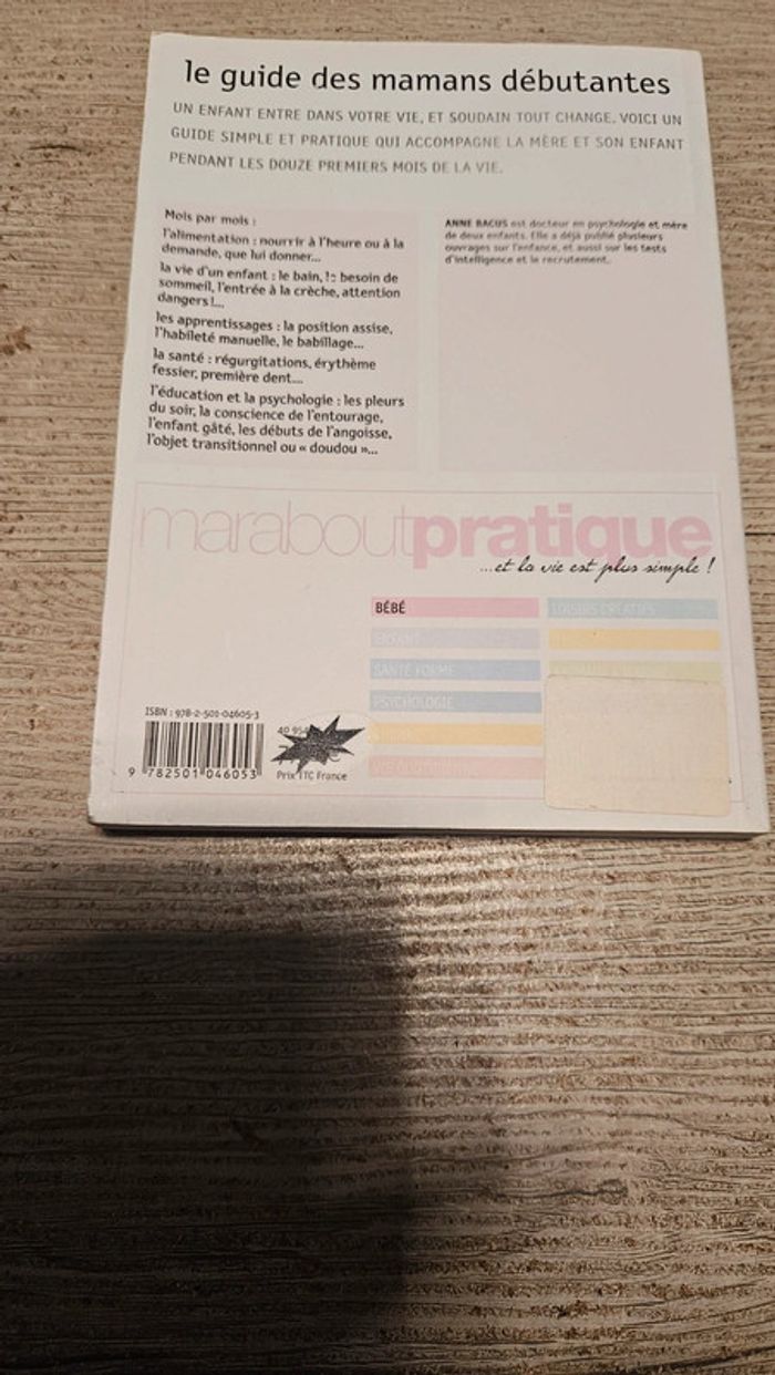 Livre de puériculture Le guide des mamans débutantes, Marabout, Anne Bacus